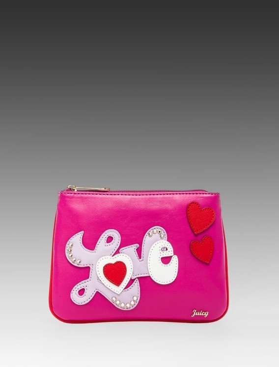 JUICY COUTURE in LOVE PINK heart valentine's LEATHER POUCH COSMETIC BAG NEW