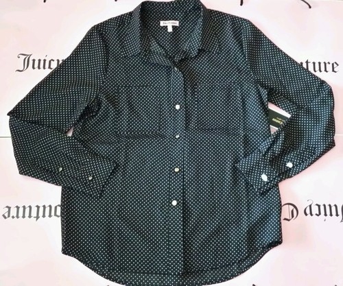 Juicy Couture black polka dot Blouse button up shirt Small new