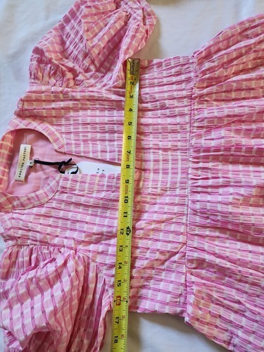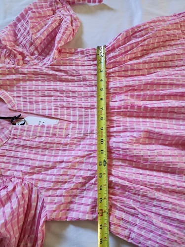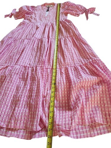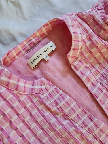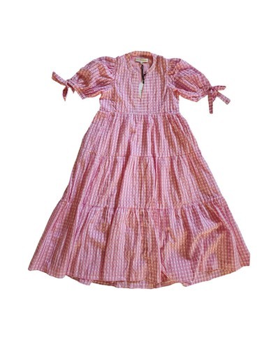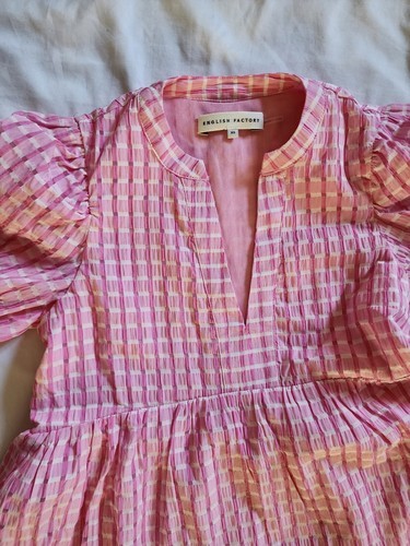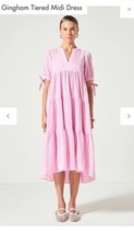 English Factory Gingham Tiered Midi Dress Womens Pink Puff Sleeves XS
