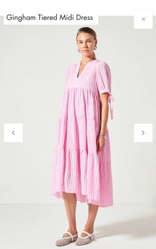English Factory Gingham Tiered Midi Dress Womens Pink Puff Sleeves