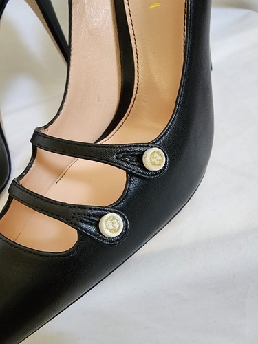 Gucci Women Aneta Point Toe Pumps Heels Black Leather Size 40