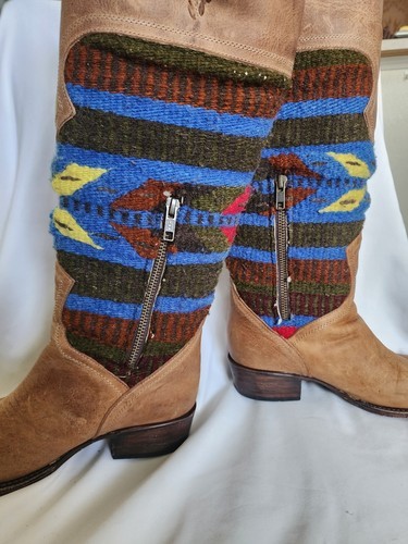 Freebird By Steven Quixote Tan Blanket Southwest Aztec Boho Tall Boot Size 8