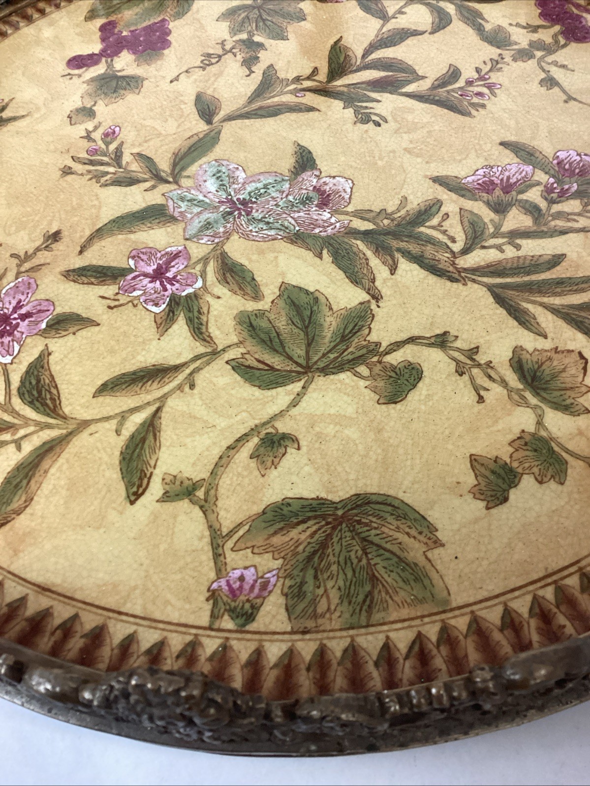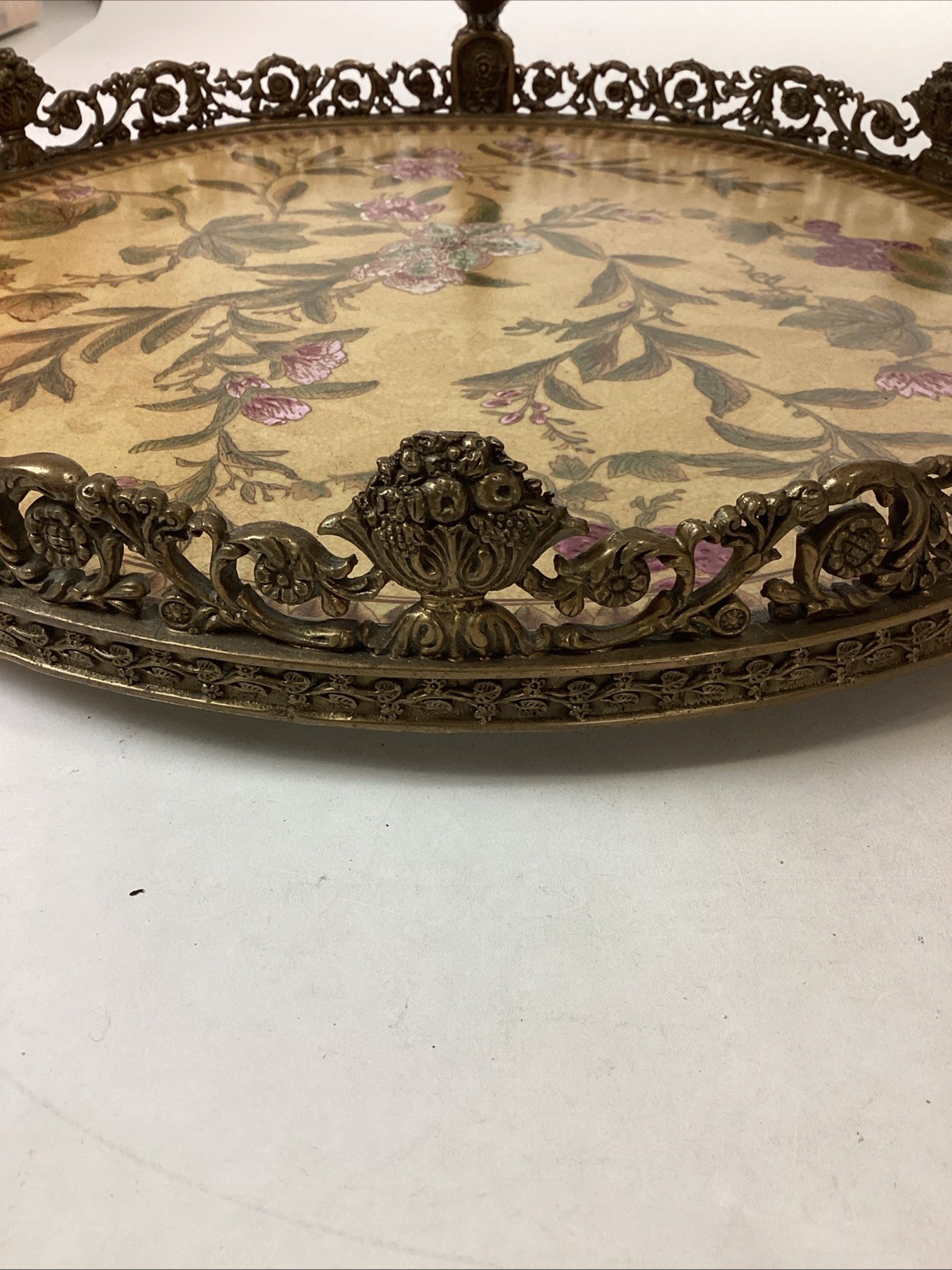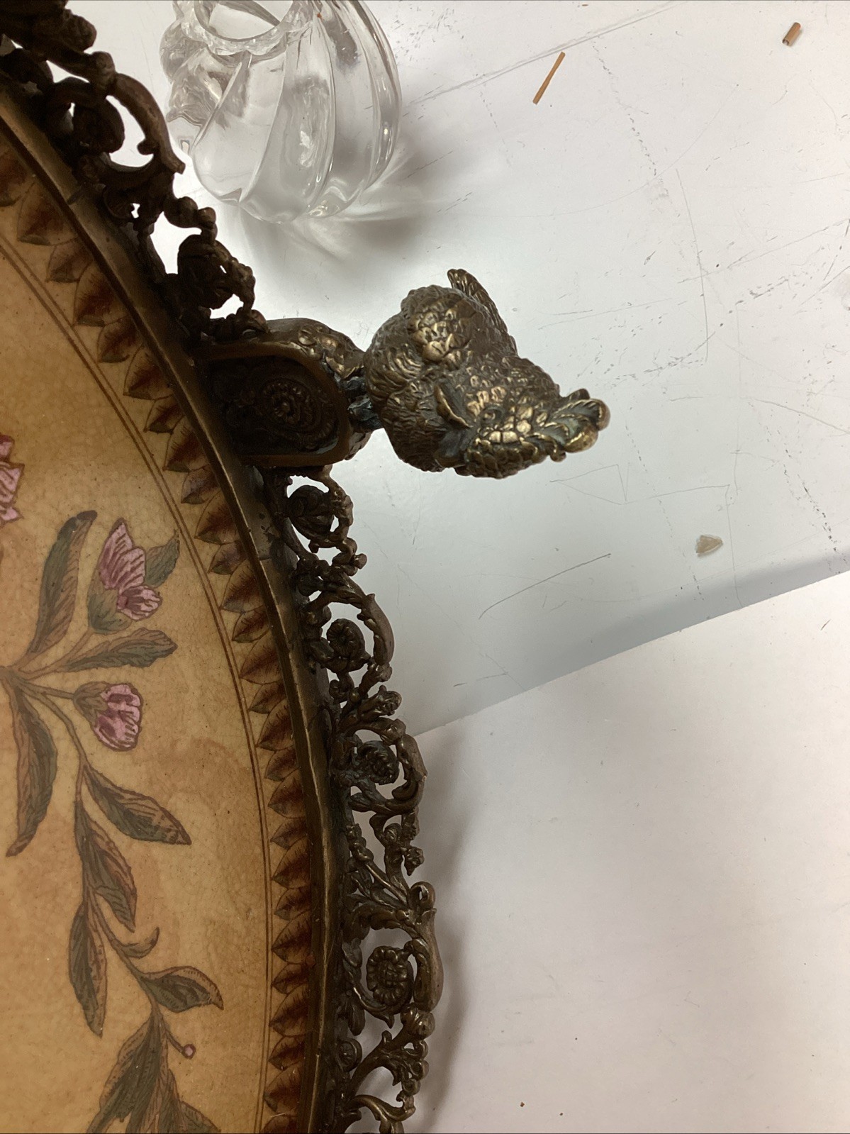 Hua Rong Tang Porcelain Painted Floral Tray w/ Bronze Feet, Trim Work and Birds