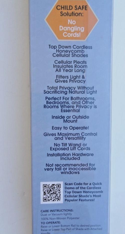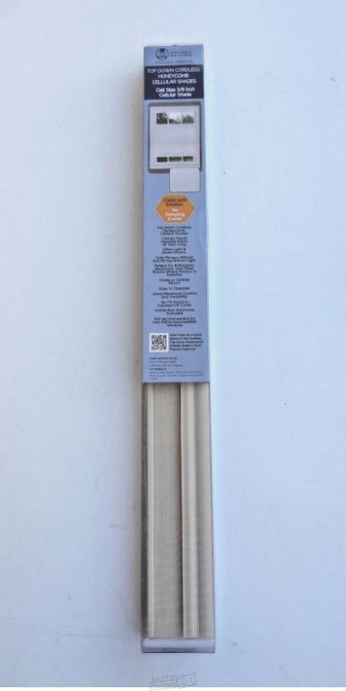 Achim Home Furnishings Top Down Cordless Honeycomb Cellular Shade Width 35" x Length 64" Color: Alabaster Cell size: 3/8" 100% Polyester Cellular Pleats Insulates Room All Year Long Filters Light Gives Privacy Total Privacy without Sacrificing Natural Light Perfect for Bathroom, Bedroom, and other rooms where Privacy is Essential Inside or Outside Mount Use to operate Gives maximum control and Versatility No Tilt Wand or Exposed Lift Cords Installation Hardware included Not recommended for very tall windows