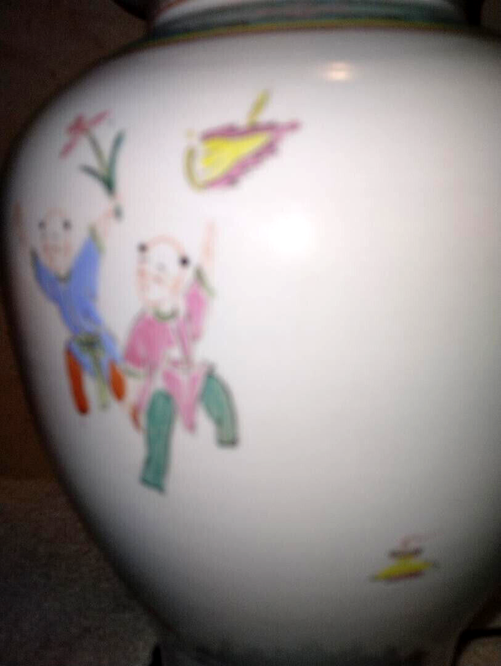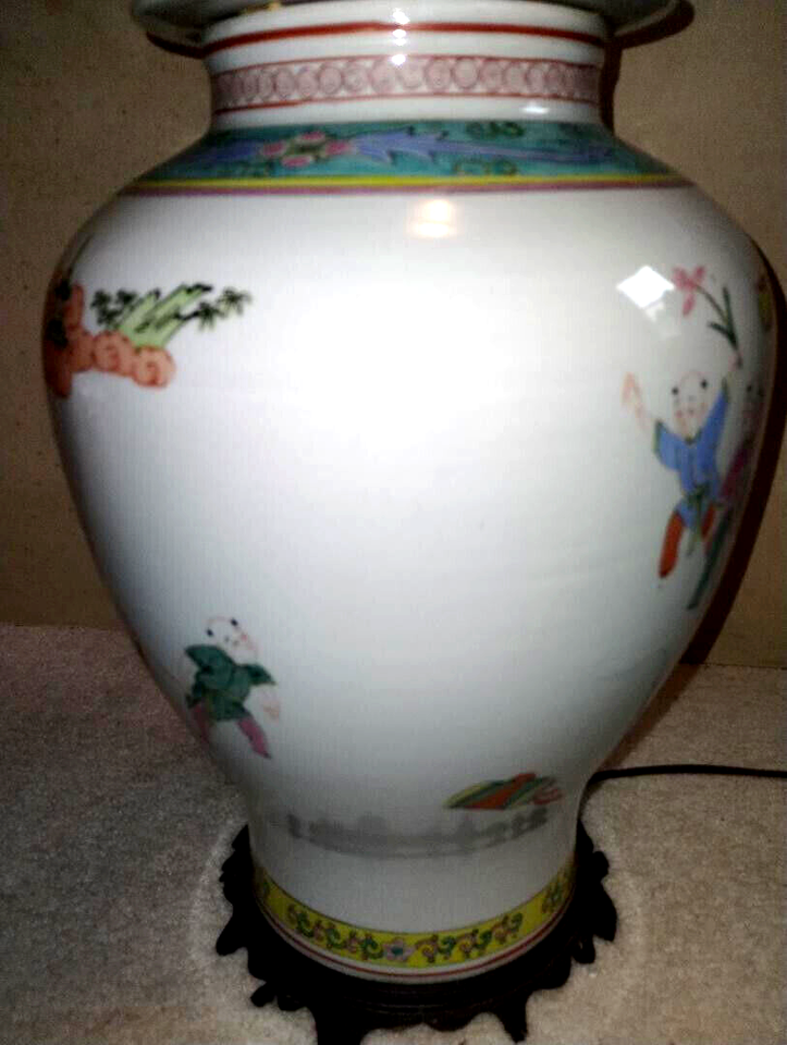 Vintage Large Chinese Motifs Decorative Ceramic Table Lamp Excellent Appearance