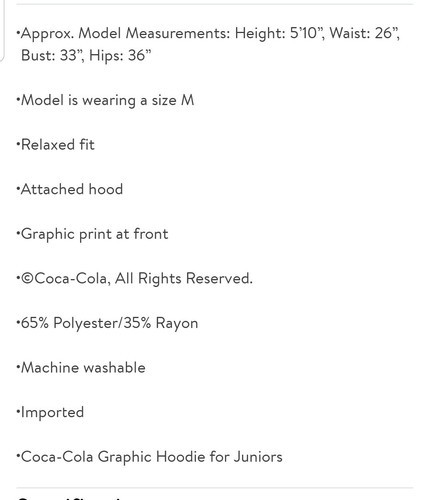 Coca Cola "U Can't Beat the Real Thing" Embroidered fleece lined Hoodie Junior M