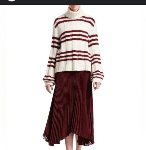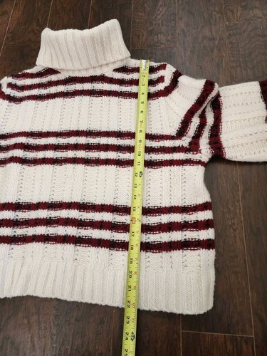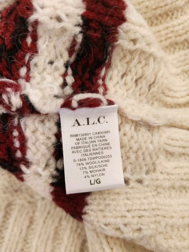 A.L.C. Women's Zaira Wool Blend Striped Sweater in Cream/Maroon Size L $585