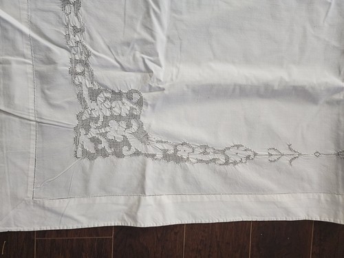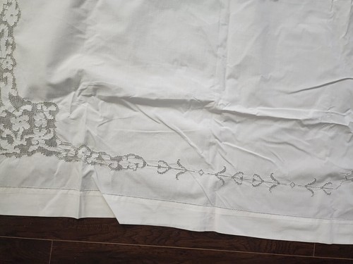 Antique French White Flat Sheet With Lace Inserts+ 2 pillow shams 88"x95" read*