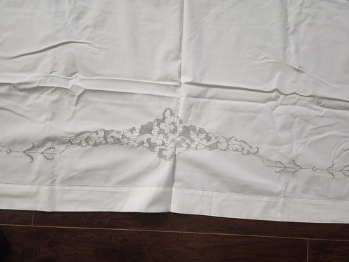 Condition pre loved. No rips or holes. However pillow shams show age related yellowing. No rips or holes. Non smoking. Has to be soaked to lift old yellowing. Please make sure you are familiar with treating antique linens before purchasing.