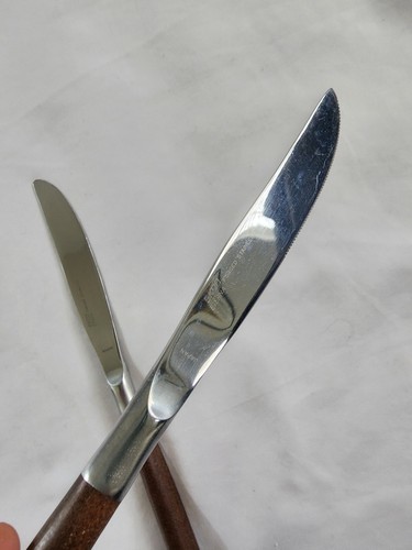 2 x Ekco Eterna CANOE MUFFIN Dinner knife MCM Stainless Flatware Faux Wood Handle
