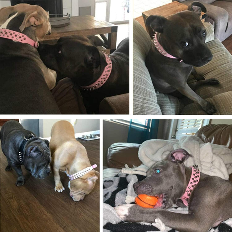 Attractive And Well-designed Studded Collar: Distinguished and well made collar. Durable zinc alloy rivets, thick PU microfiber leather, sturdy hook for the leash. Super stylish looking and heavy duty collars that have both fashion and strength.