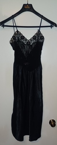Vintage Lady Lynne 34 Full Slip Nightgown Dress Scalloped Black USA Union Made