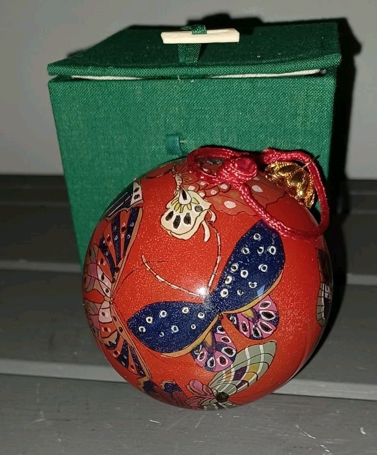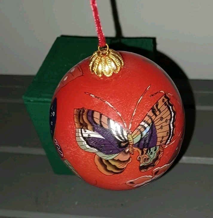 Li Bien Reverse Hand Painted Glass Butterfly's Design Christmas Holiday Ornament