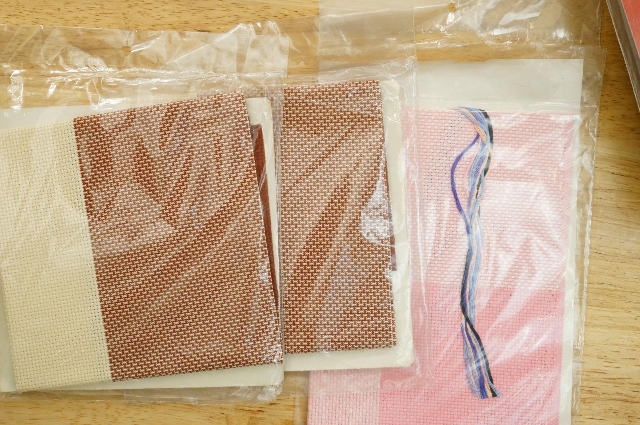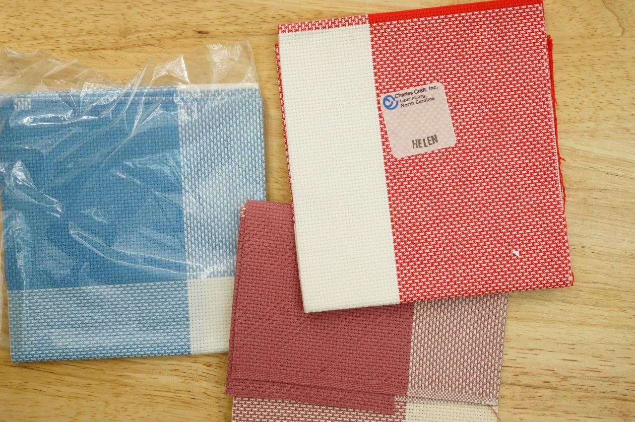 Vintage NOS Lot Charles Craft Hopscotch Colored 14CT Cross Stitch Fabric & Kit