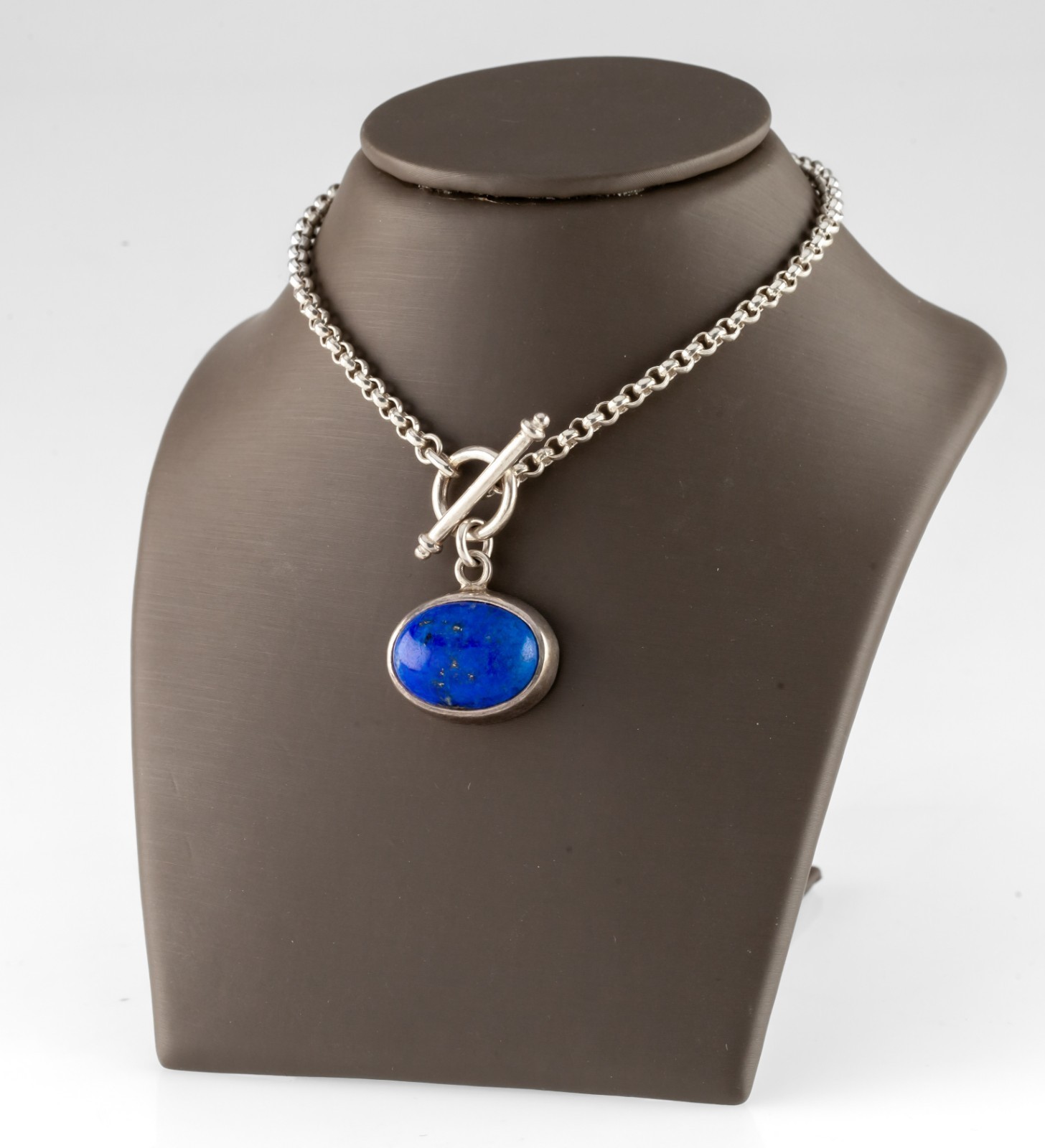 Sterling Silver Lapis Lazuli Rolo Chain Toggle Necklace - Beautiful Color 18"