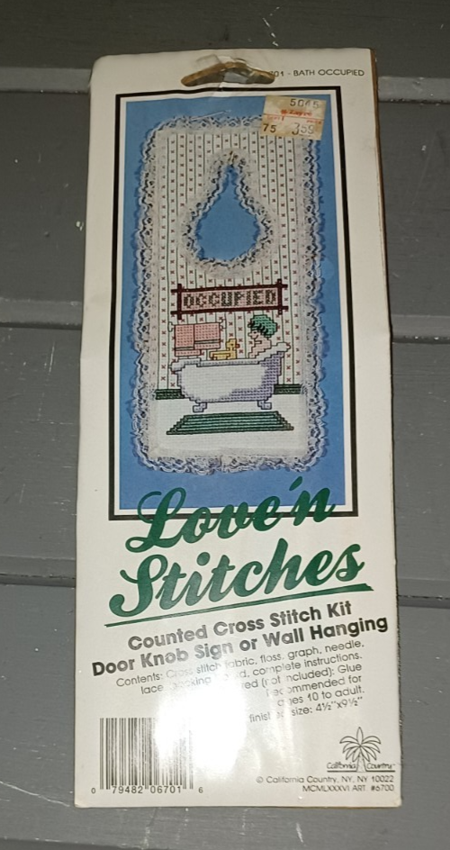 Love ' N Stitches Cross Stitch 'Bath Occupied' Door Knob Sign Wall Hanging Kit