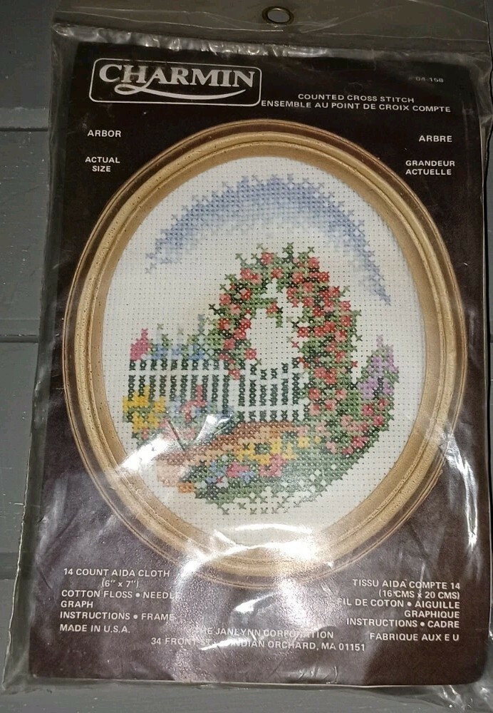 Janlynn Charmin Embroidery Kit Arbor Floral Kit W Frame Rare Vintage USA