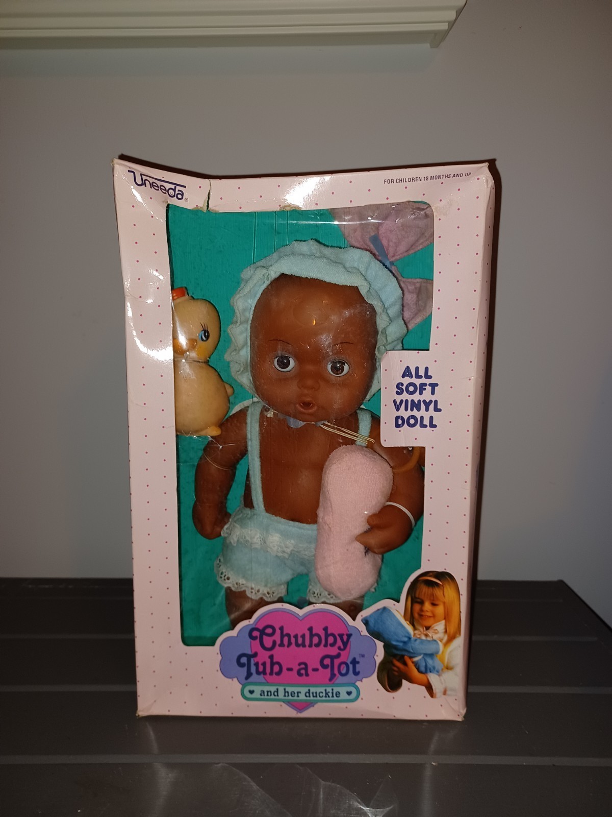 Vintage Chubby Tub-a-Tot 14" Soft Vinyl Baby Doll Bath Time 1984 Uneeda African American