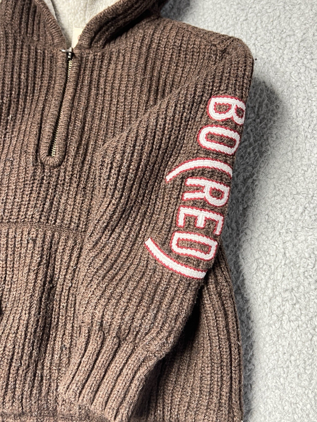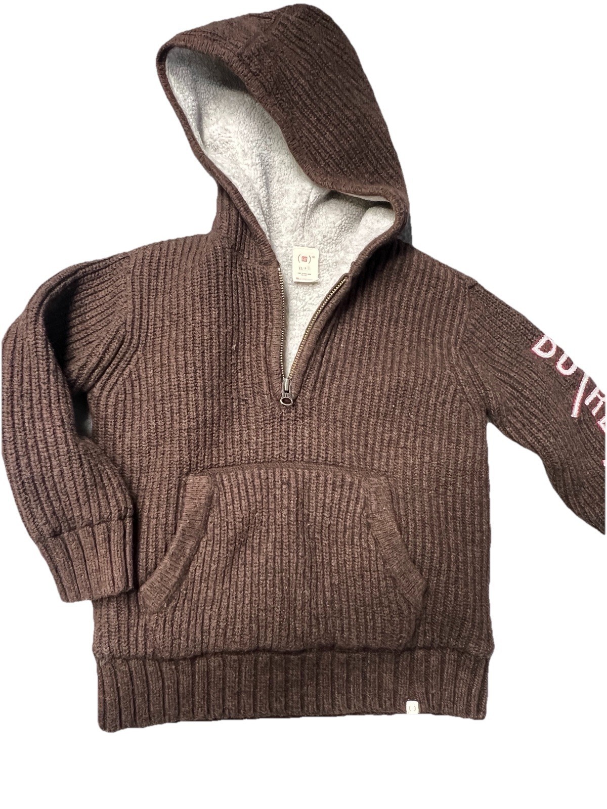 VTG Gap Inc. Brown Knit Half-Zip Hooded Sweater BoRed Toddler 4-5 Warm Fleeced