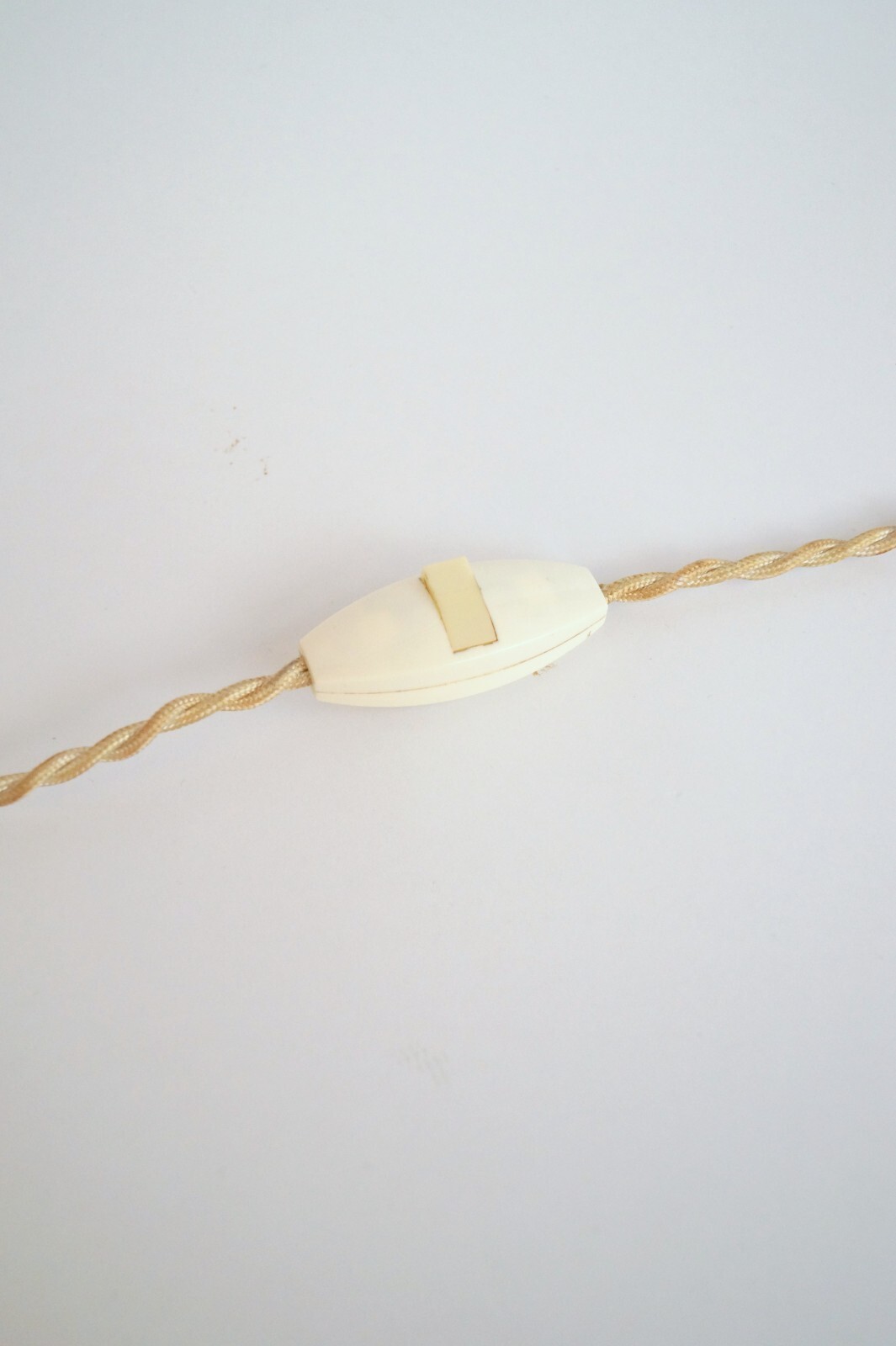 Dilked, cream-colored vintage textile cable with slight traces of age.