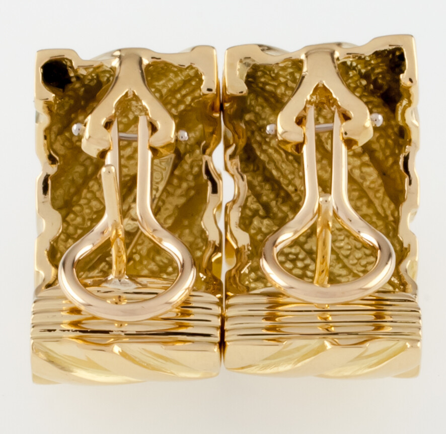 18k Zwei Ton Gold Texturiert Huggie Ohrringe M / Diamant Band Atemberaubend