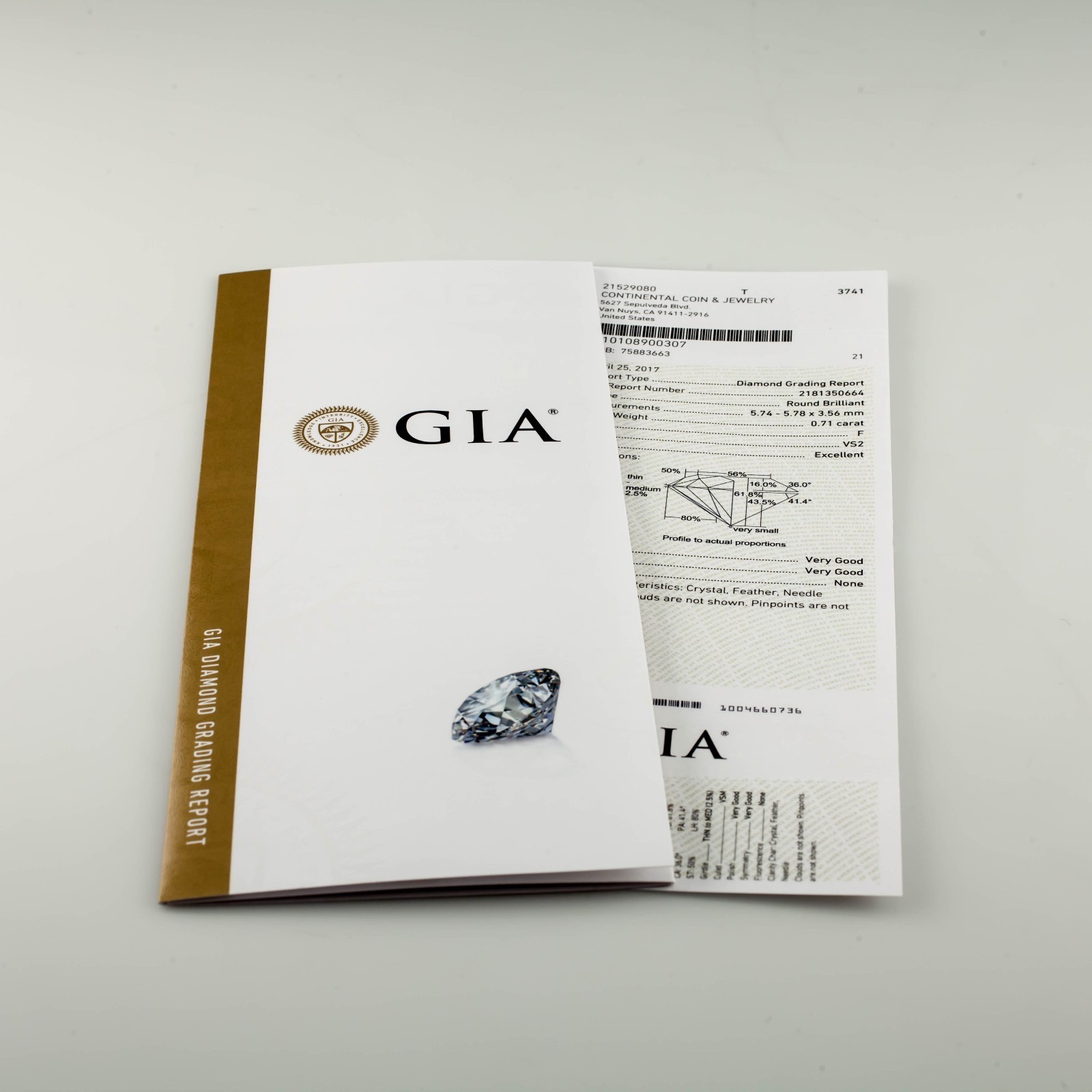 0.71 Karat Lose F/VS2 Rund Brillantschliff Diamant GIA Zertifiziert