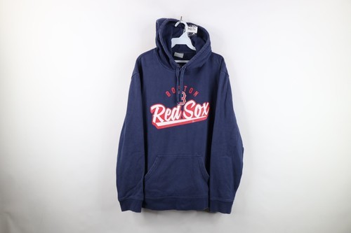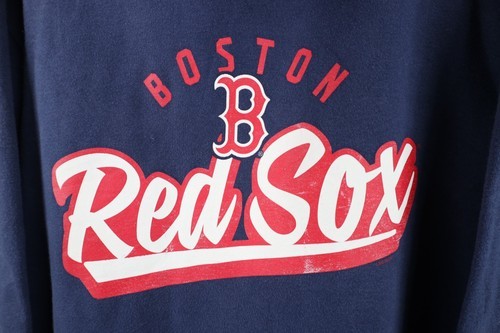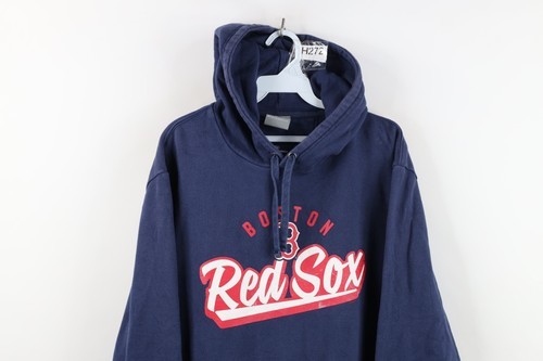 Vintage Y2K Mens XL Faded Spell Out Script Boston Red Sox Baseball Hoodie Blue