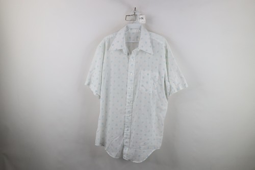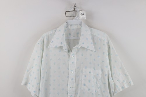 Vintage 70s Streetwear Mens 16.5 Sheer Flower Short Sleeve Collared Button Shirt