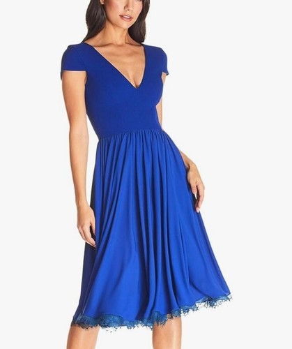 Elevate your wardrobe with this stunning Dress The Population dress in a beautiful blue color. The A-line style and knee-length design make it perfect for any occasion. The dress features cap sleeves, a plunging neckline, and is fully lined for added comfort. Available in size L, this dress is sure to become a staple in your collection.