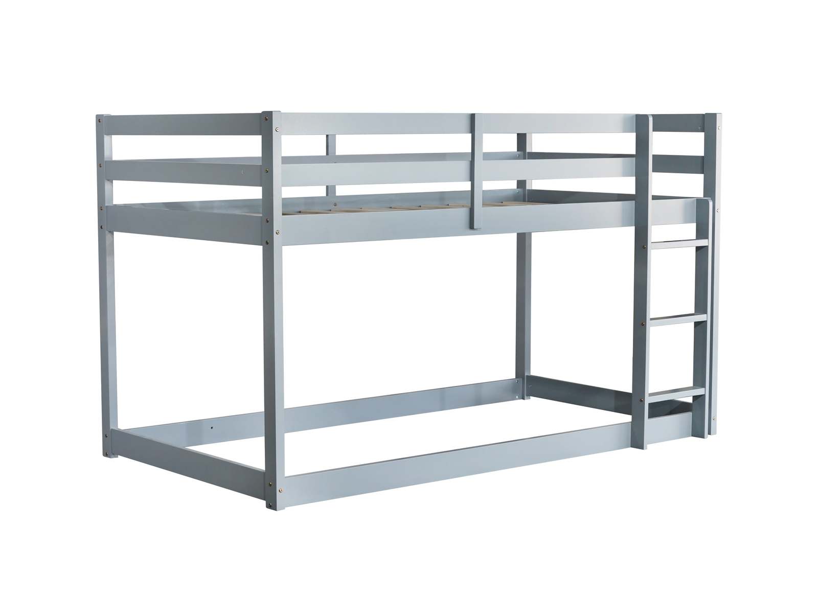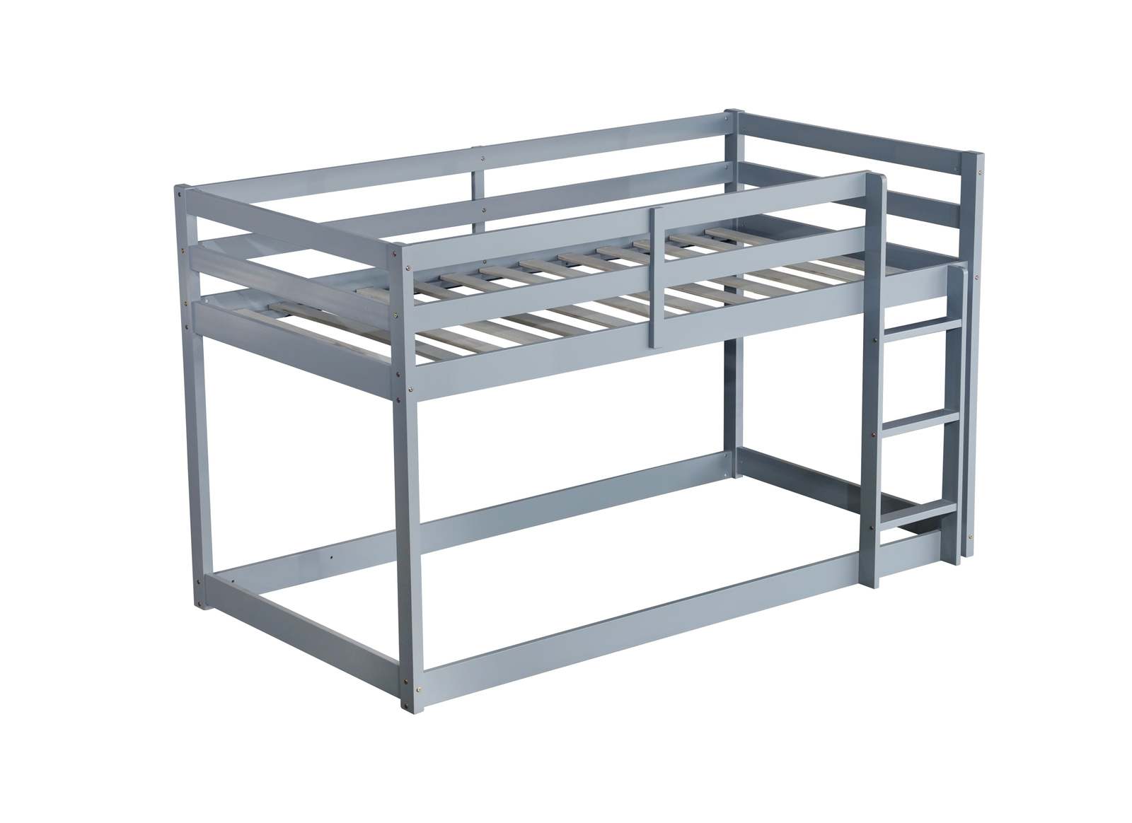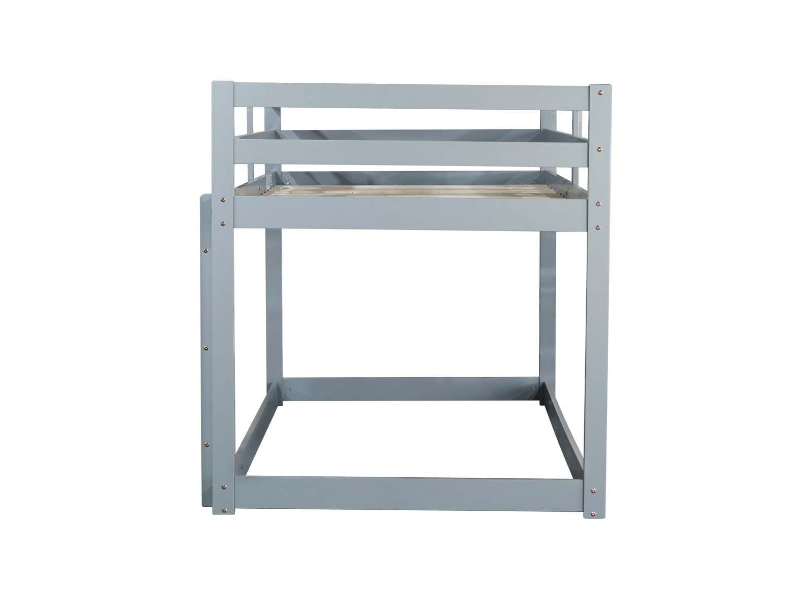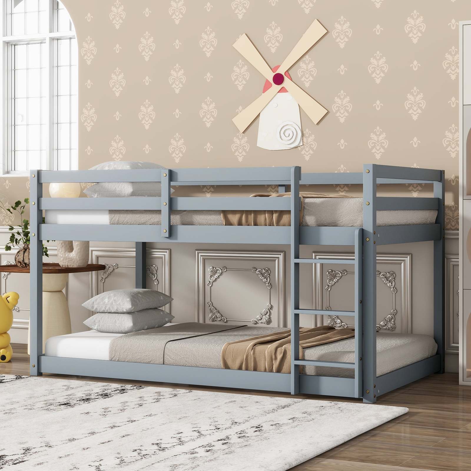 Solid Wood Twin/Twin Floor Bunk Bed w/ Ladder & Slats, Grey