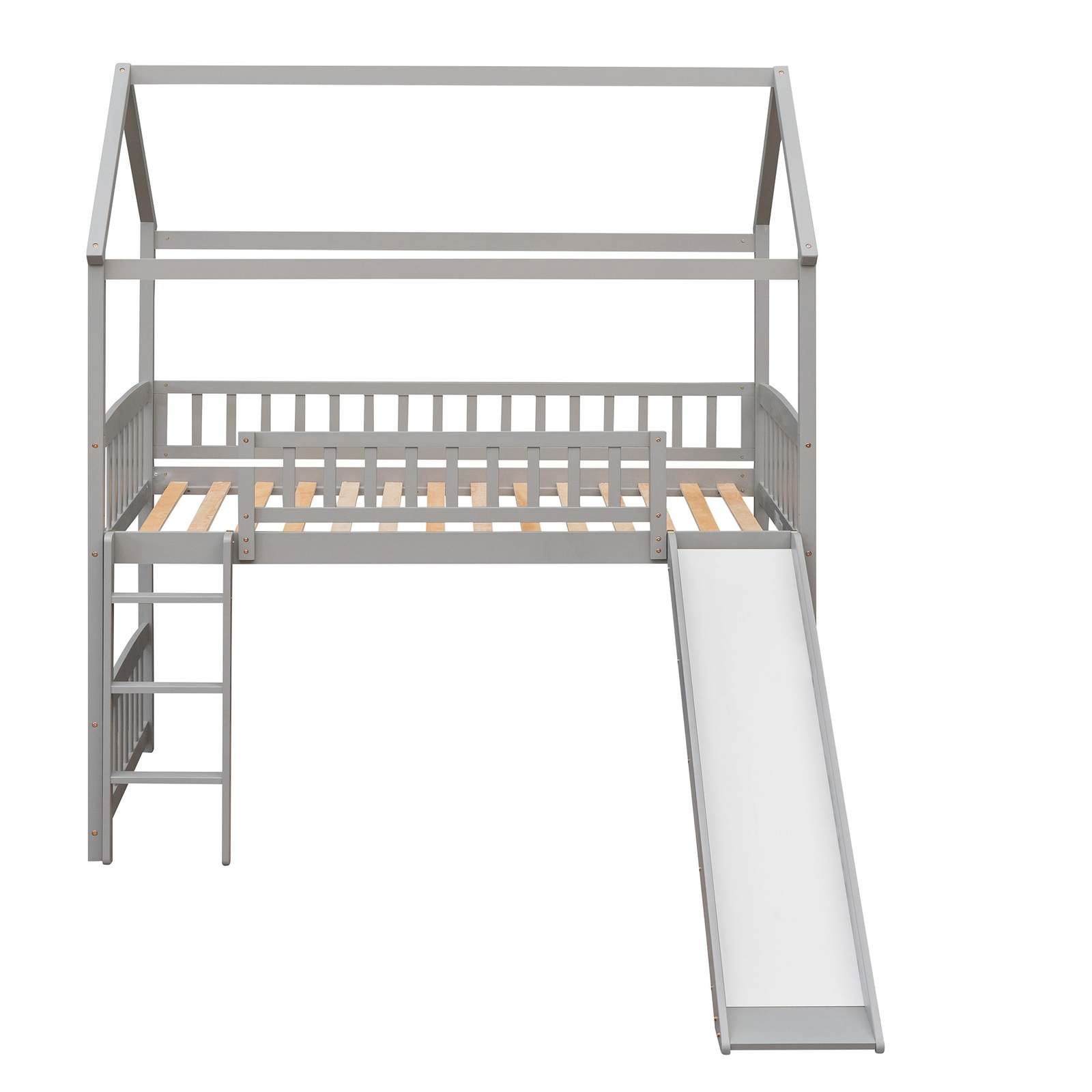 Gray Twin Loft Bed with Slide, House Bed Design - Kids Room Fun!