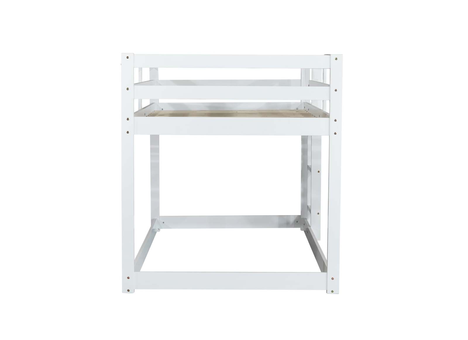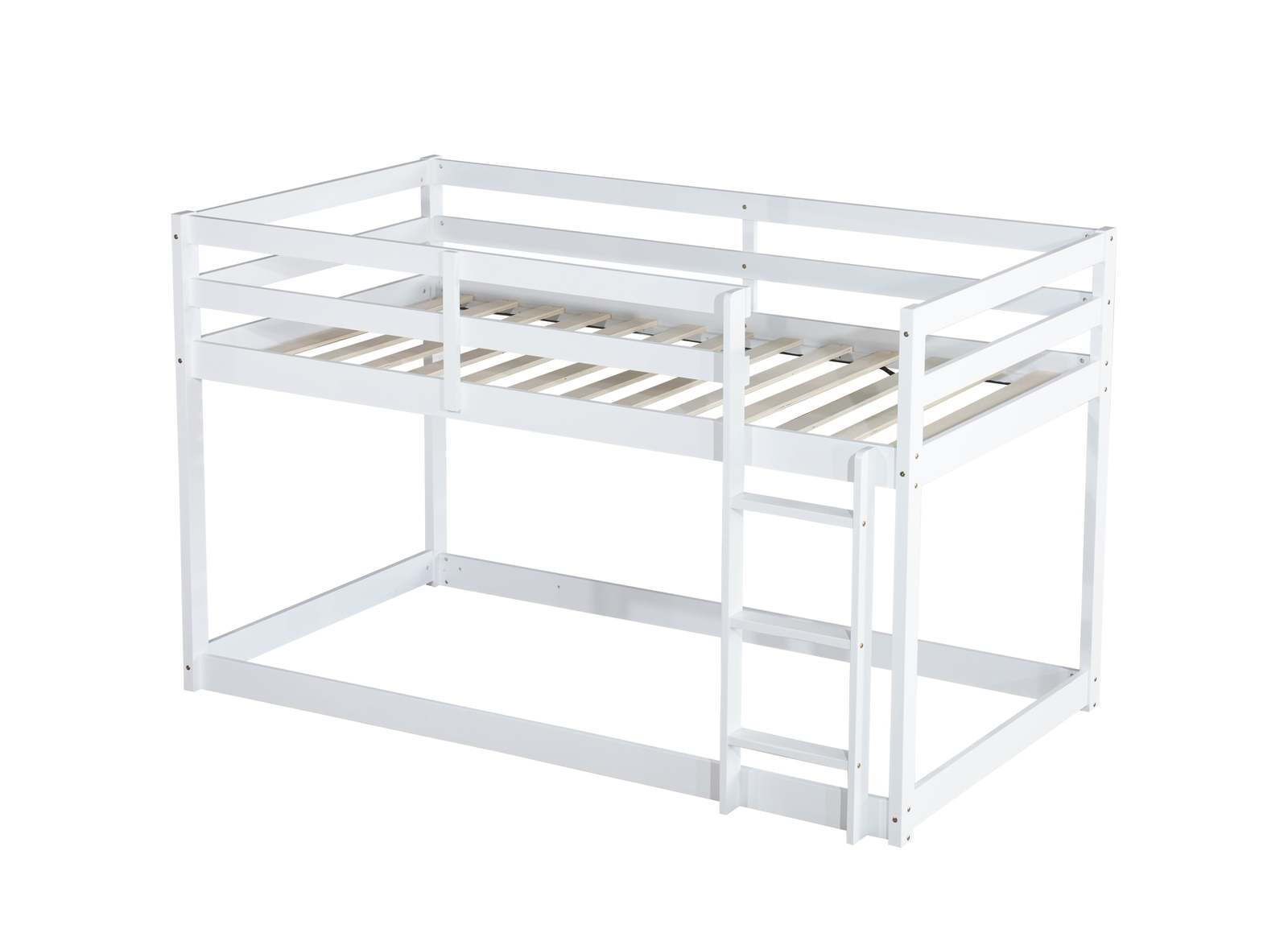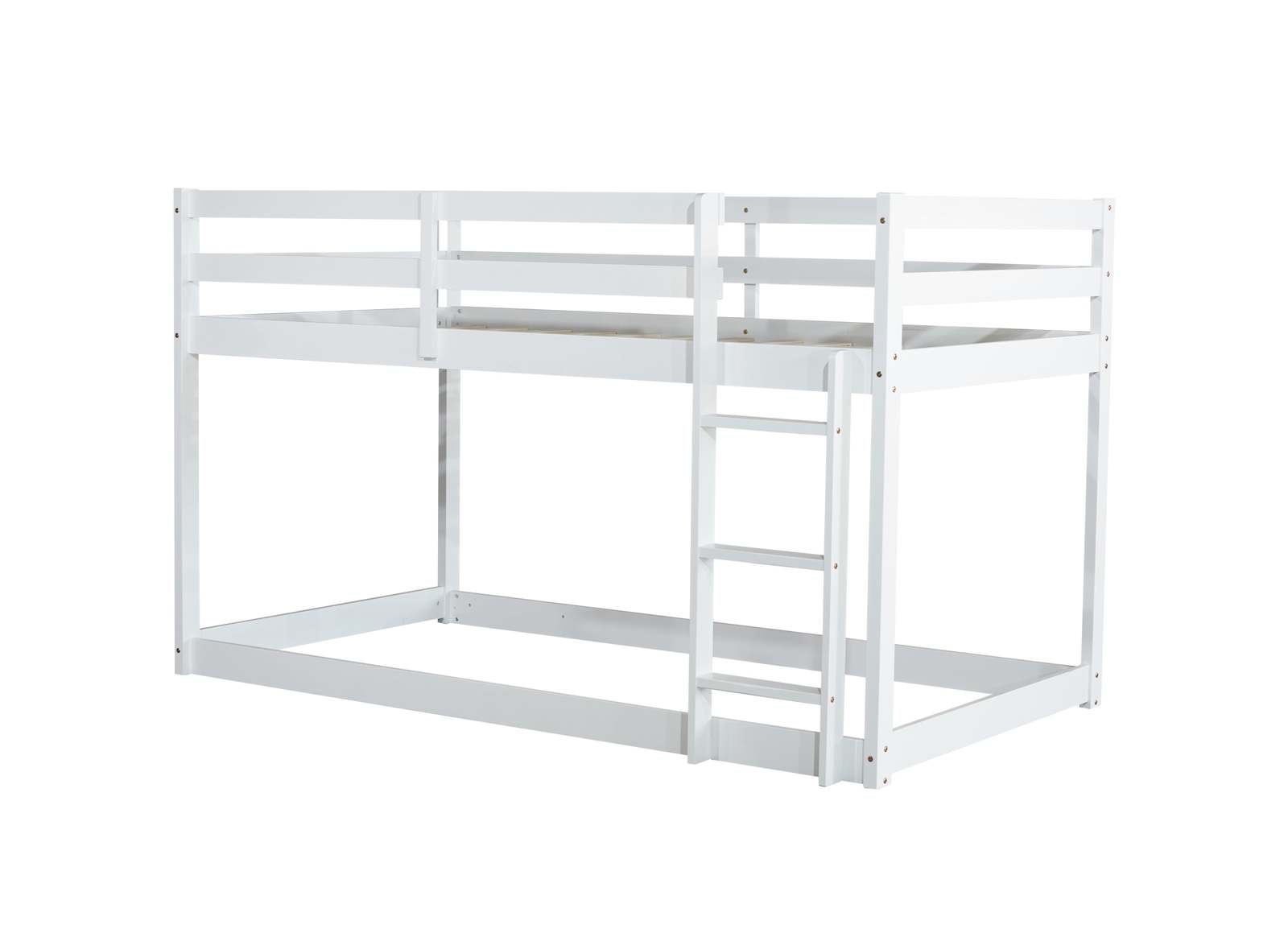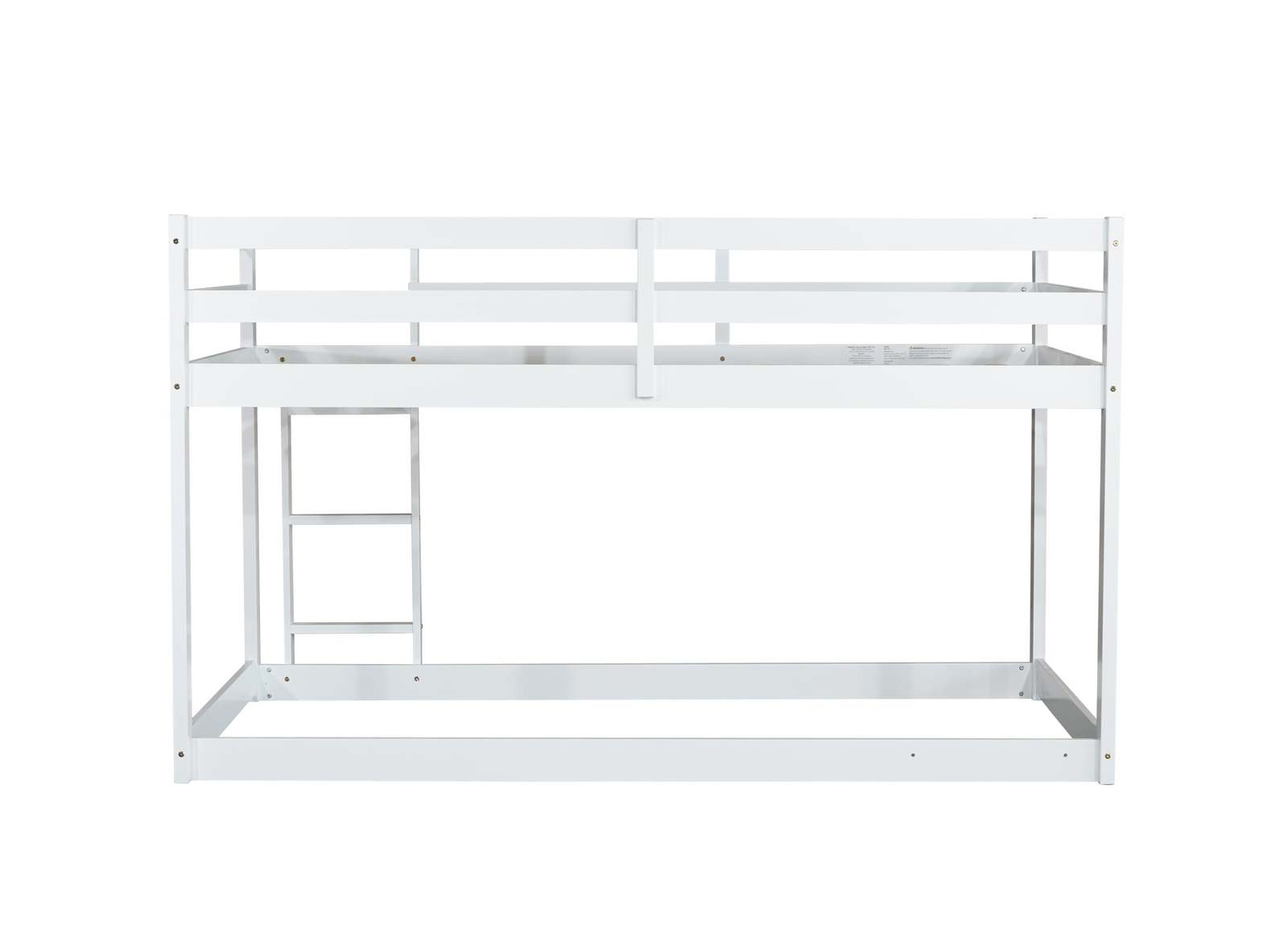 Solid Wood Twin/Twin Floor Bunk Bed w/Ladder & Slats, White