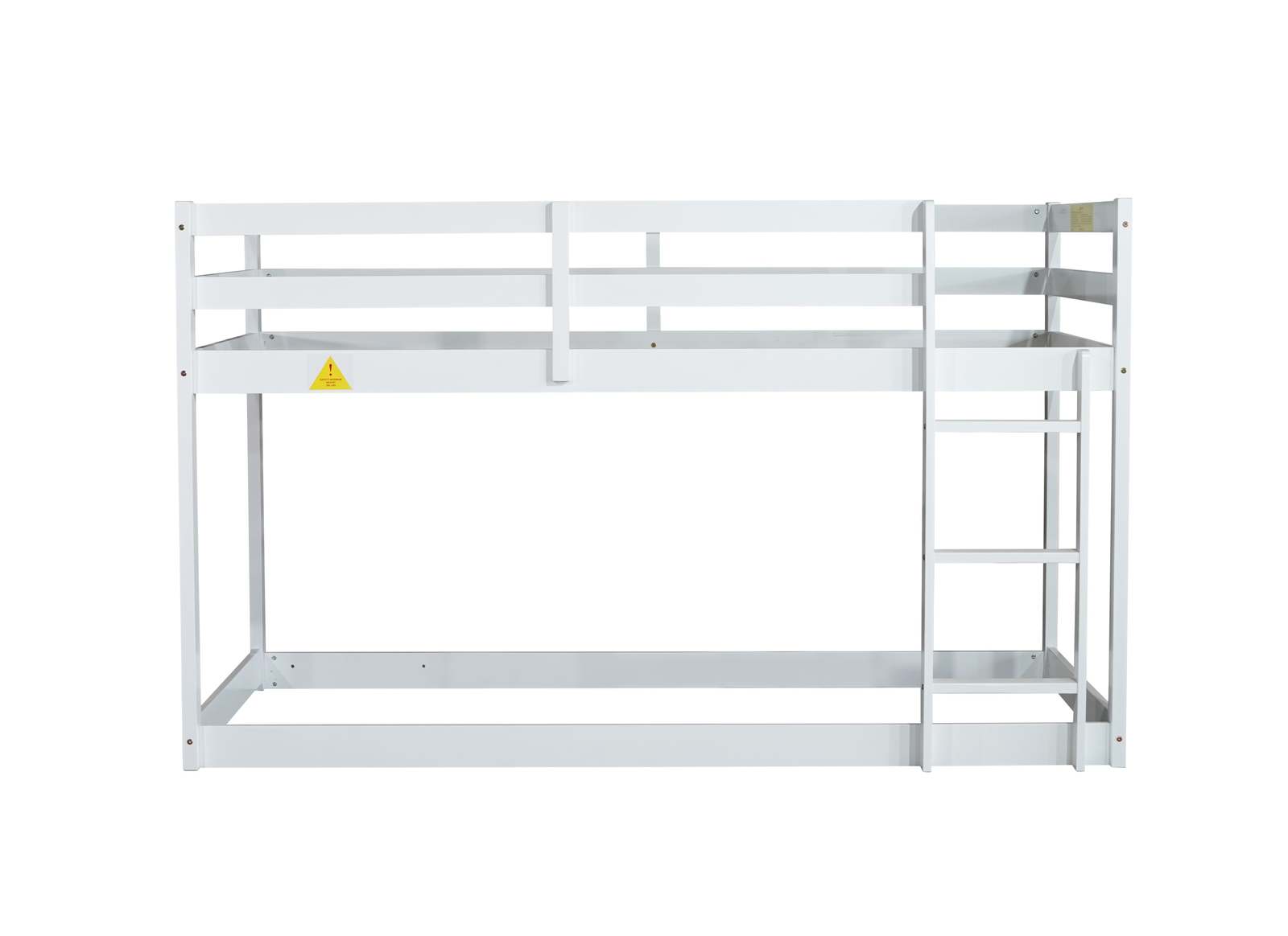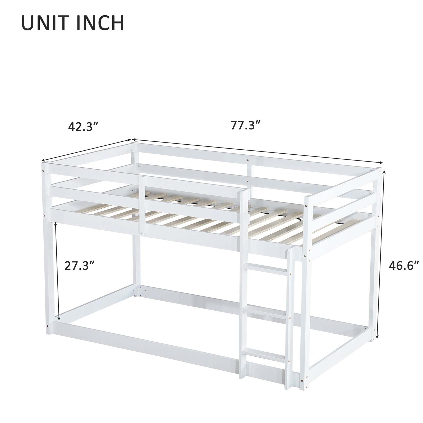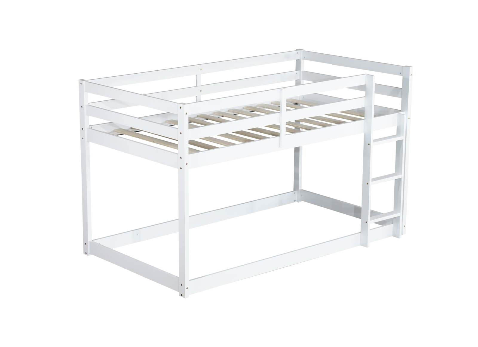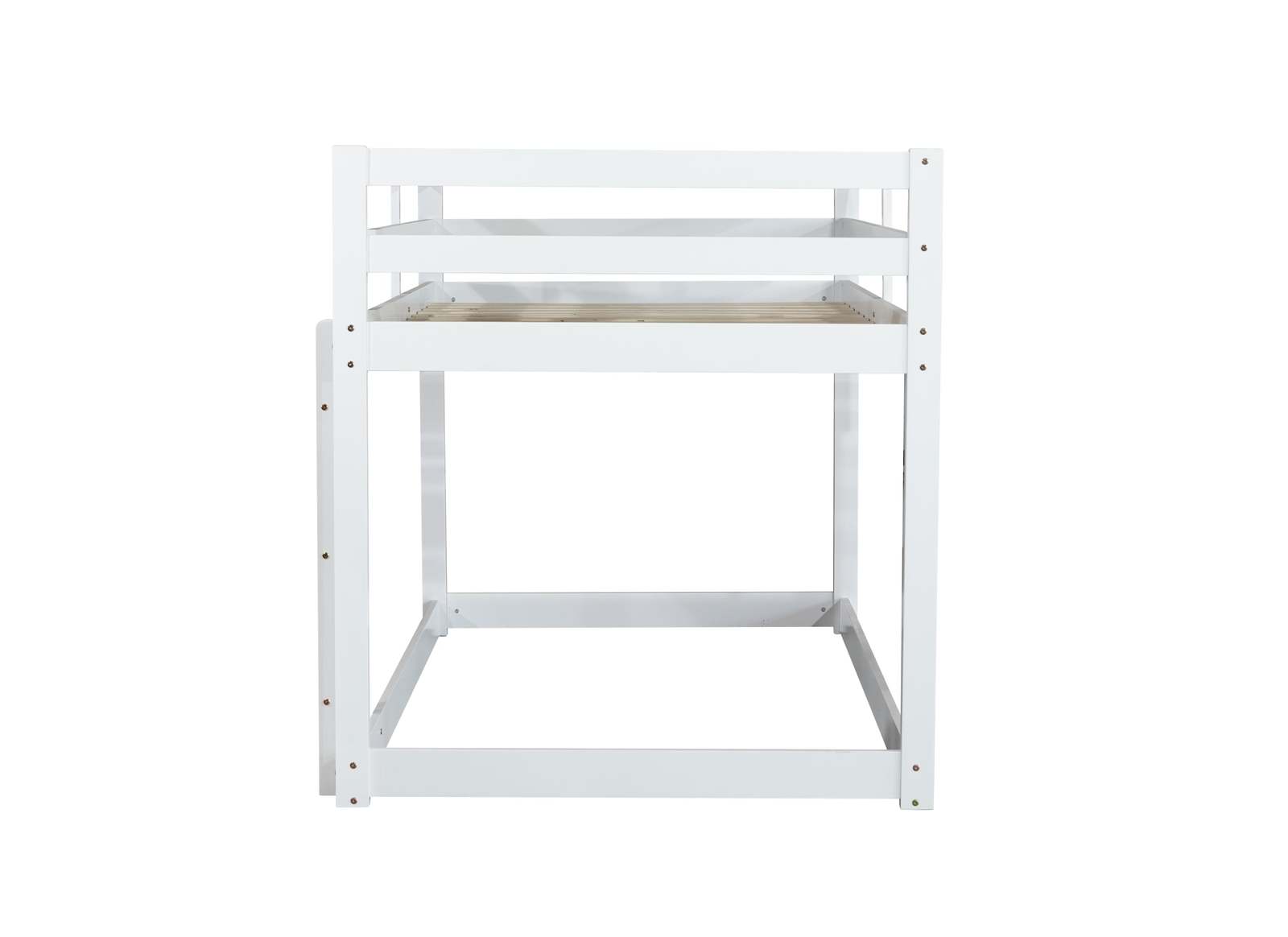 Solid Wood Twin/Twin Floor Bunk Bed w/Ladder & Slats, White