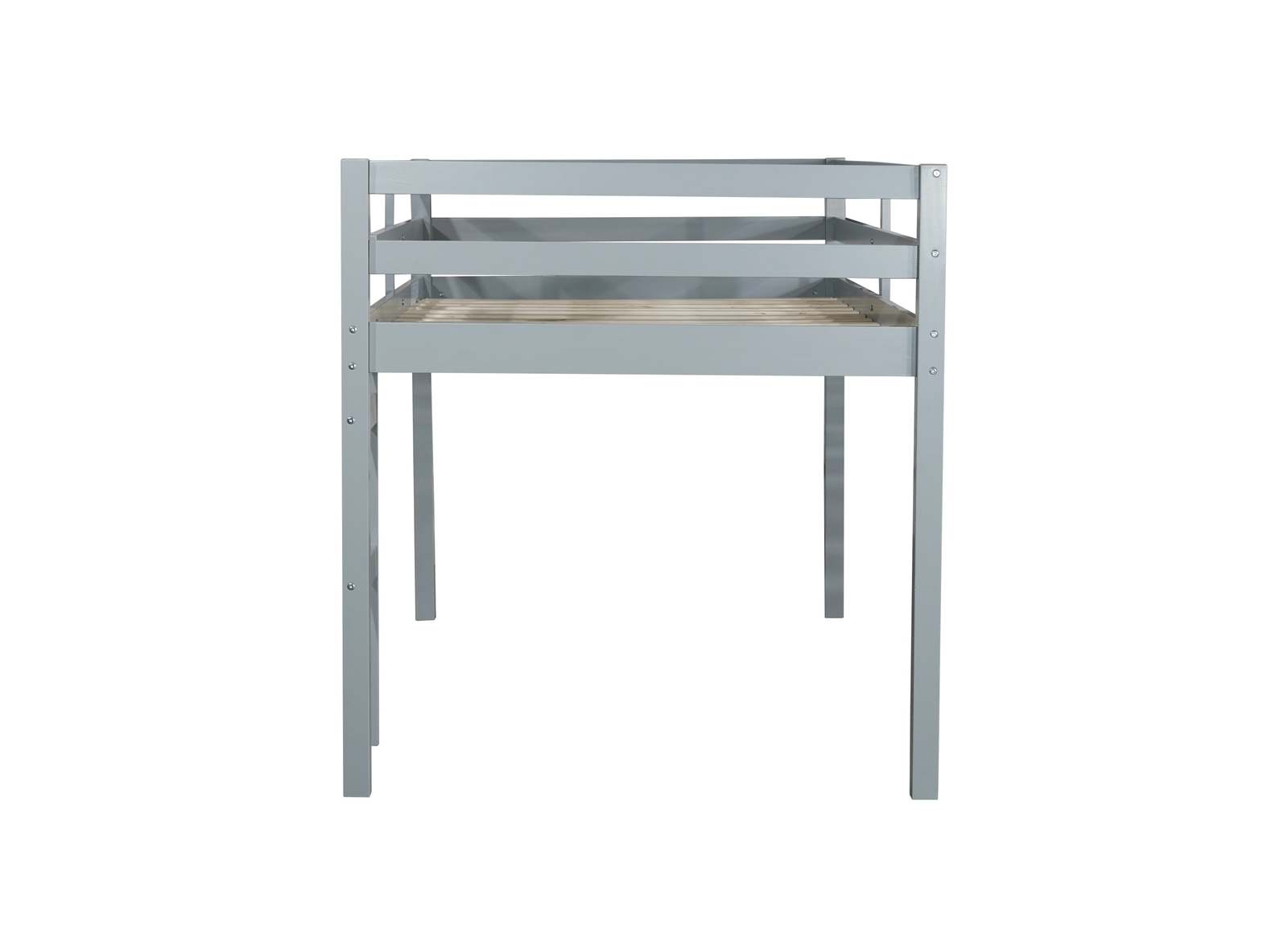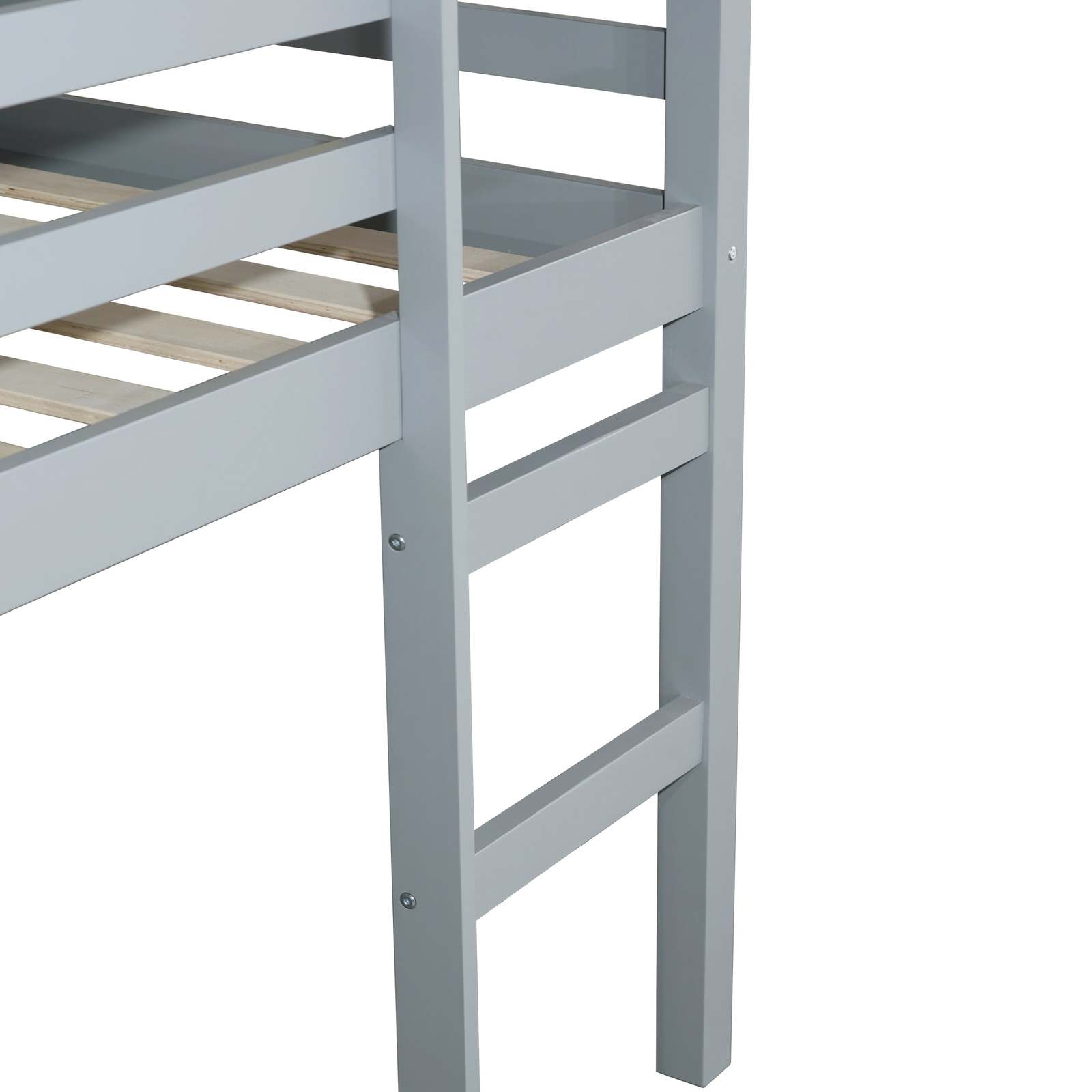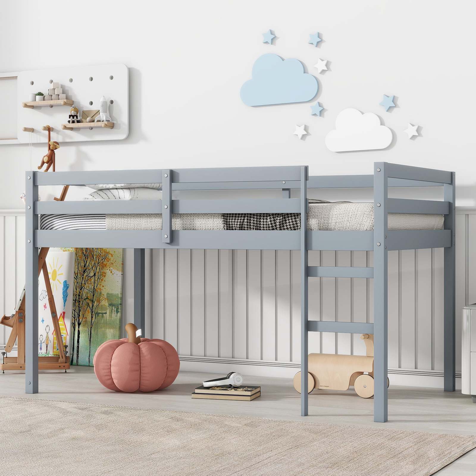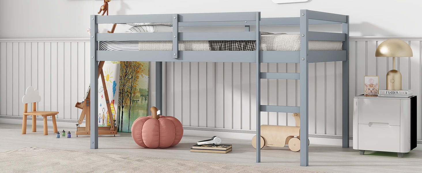 Grey Solid Wood Twin Loft Bed with Ladder & Strengthened Slats