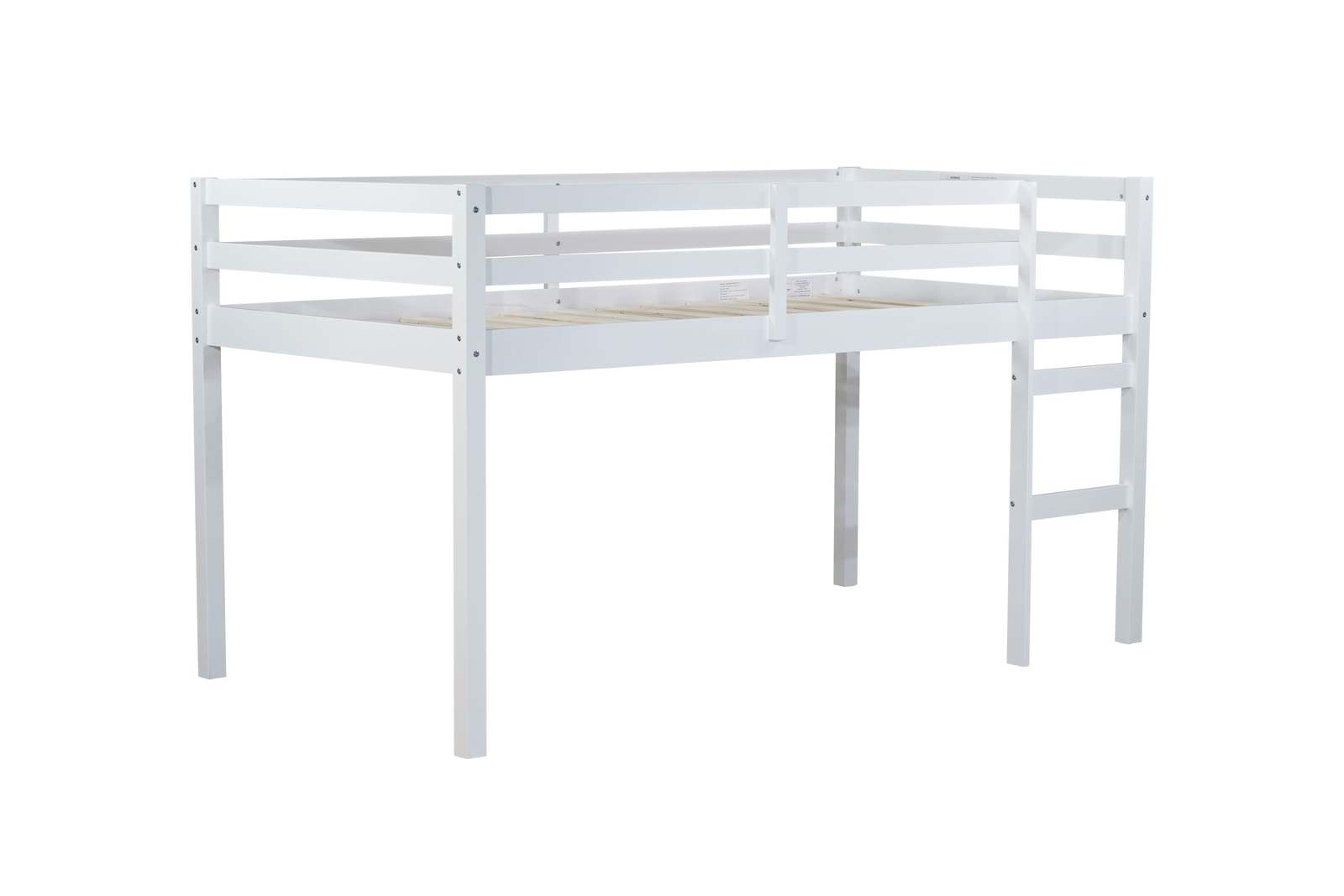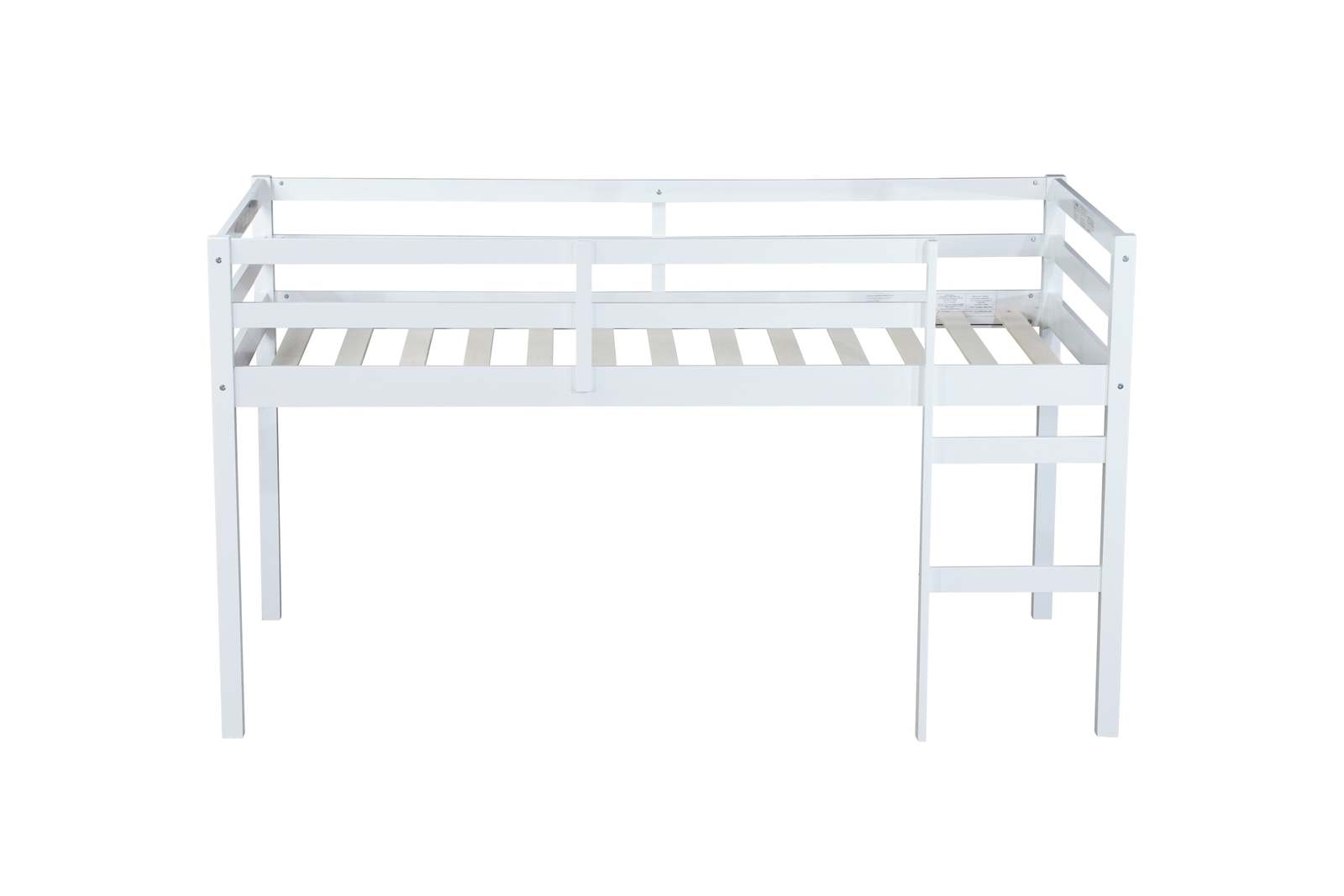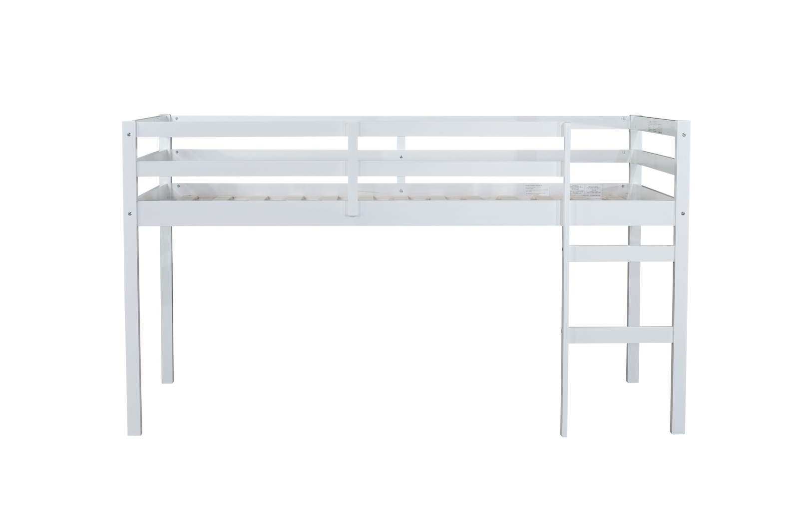 White Solid Wood Twin Loft Bed | Ladder & Strong Slats