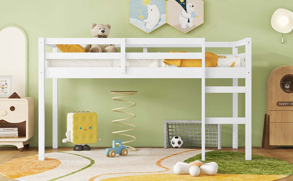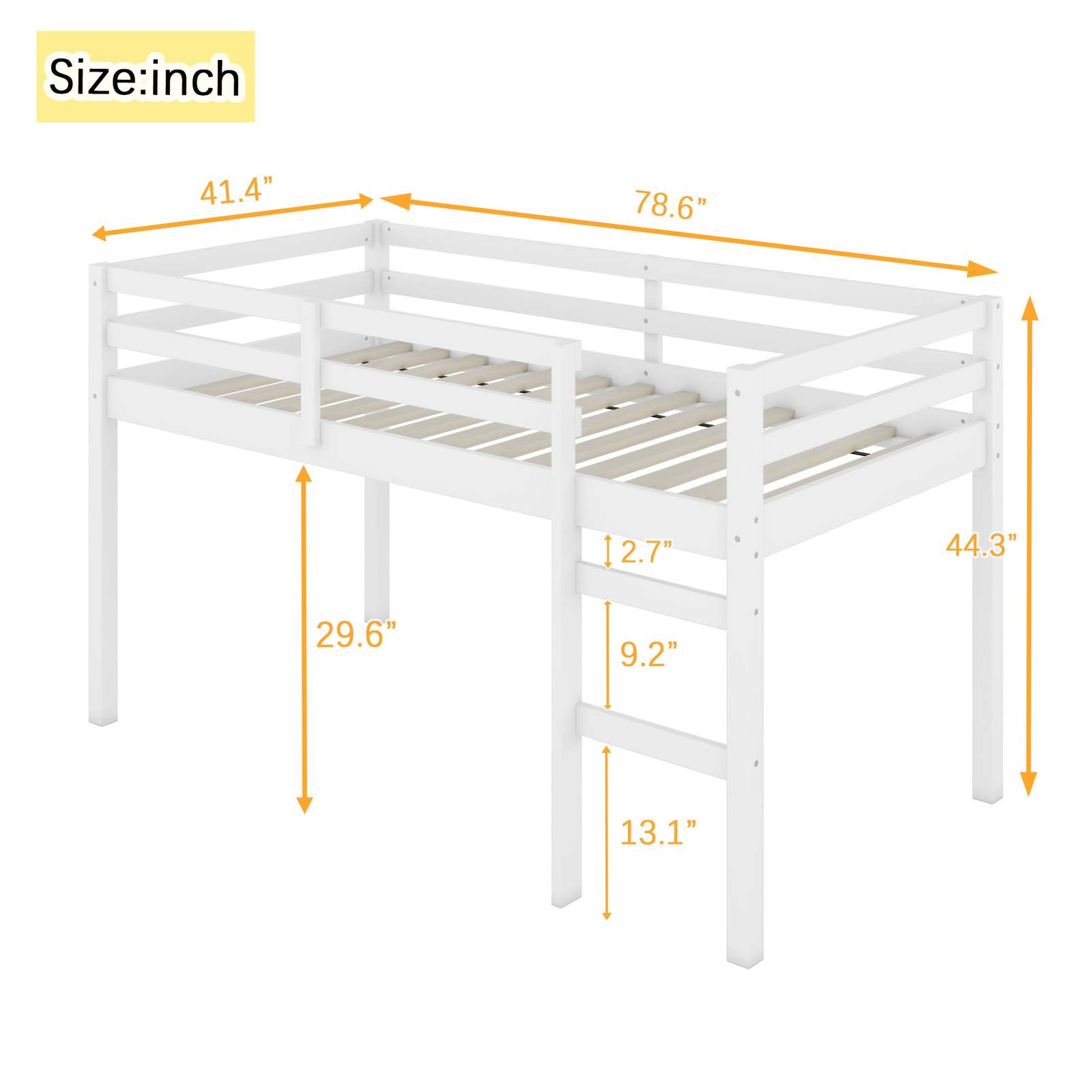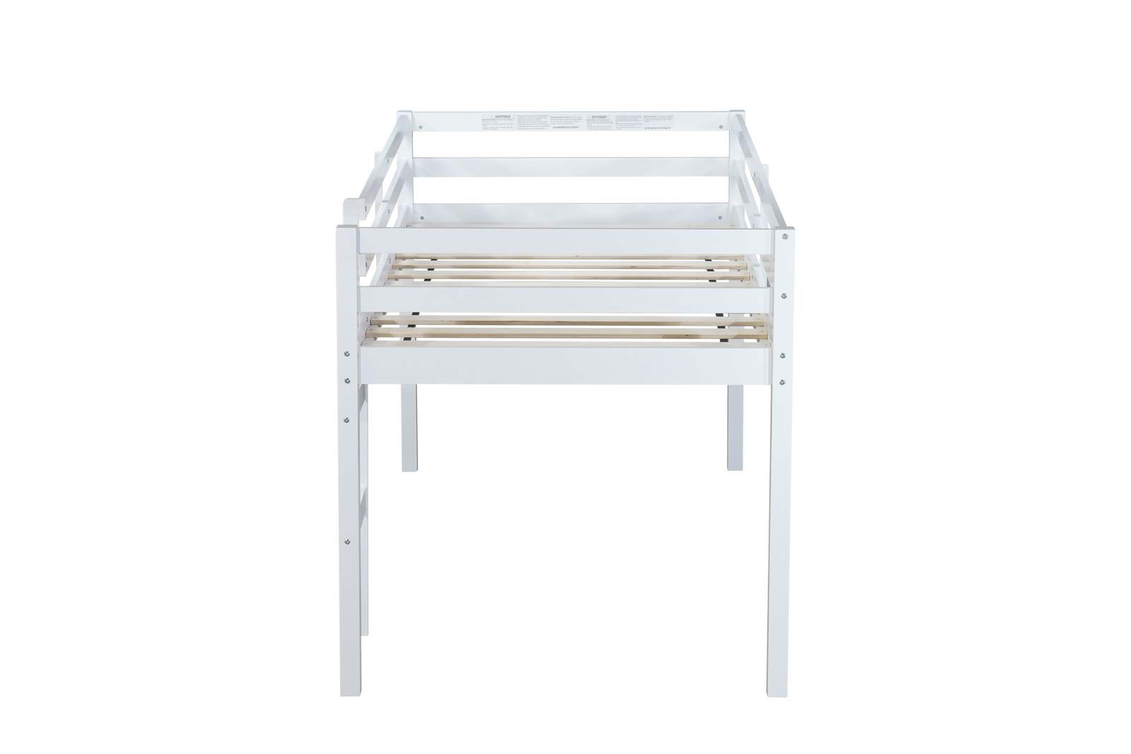White Solid Wood Twin Loft Bed | Ladder & Strong Slats
