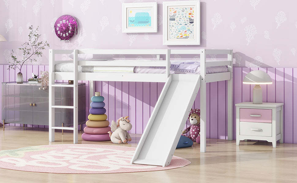 White Twin Low Loft Bed, Slide, Ladder, and 41 similar items