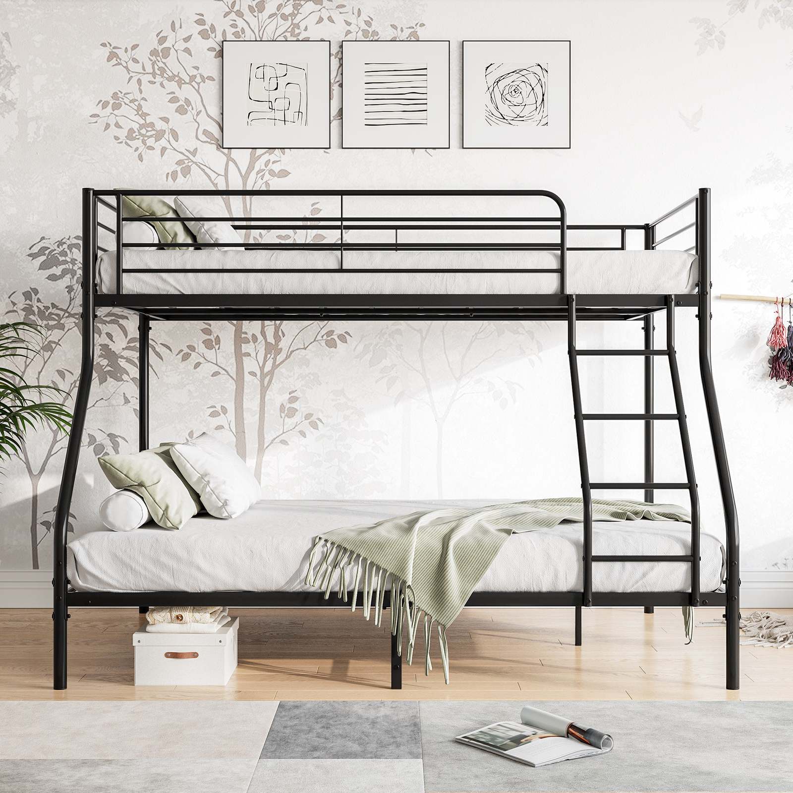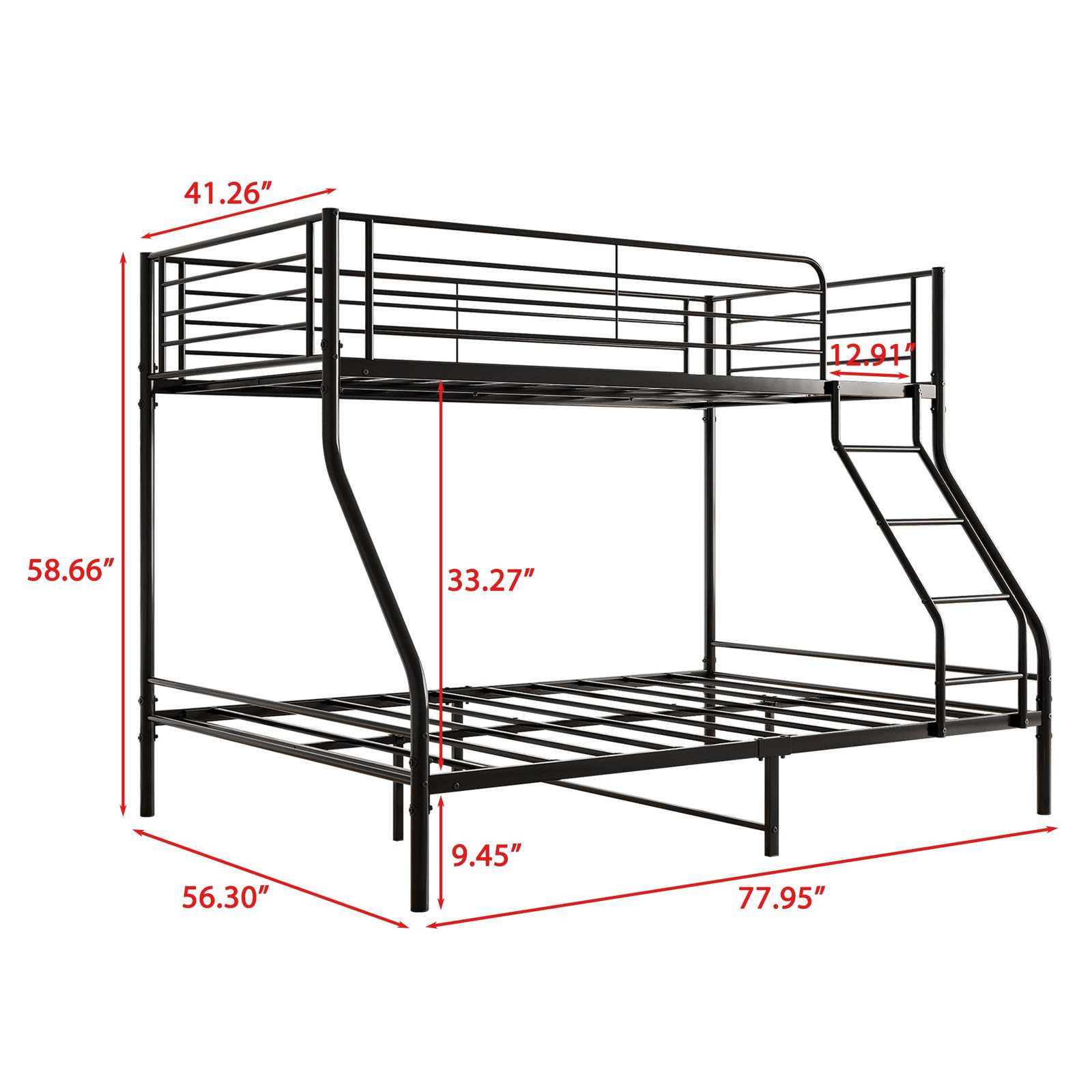 Heavy Duty Twin-Over-Full Metal Bunk Bed w/ Enhanced Guardrail, Black
