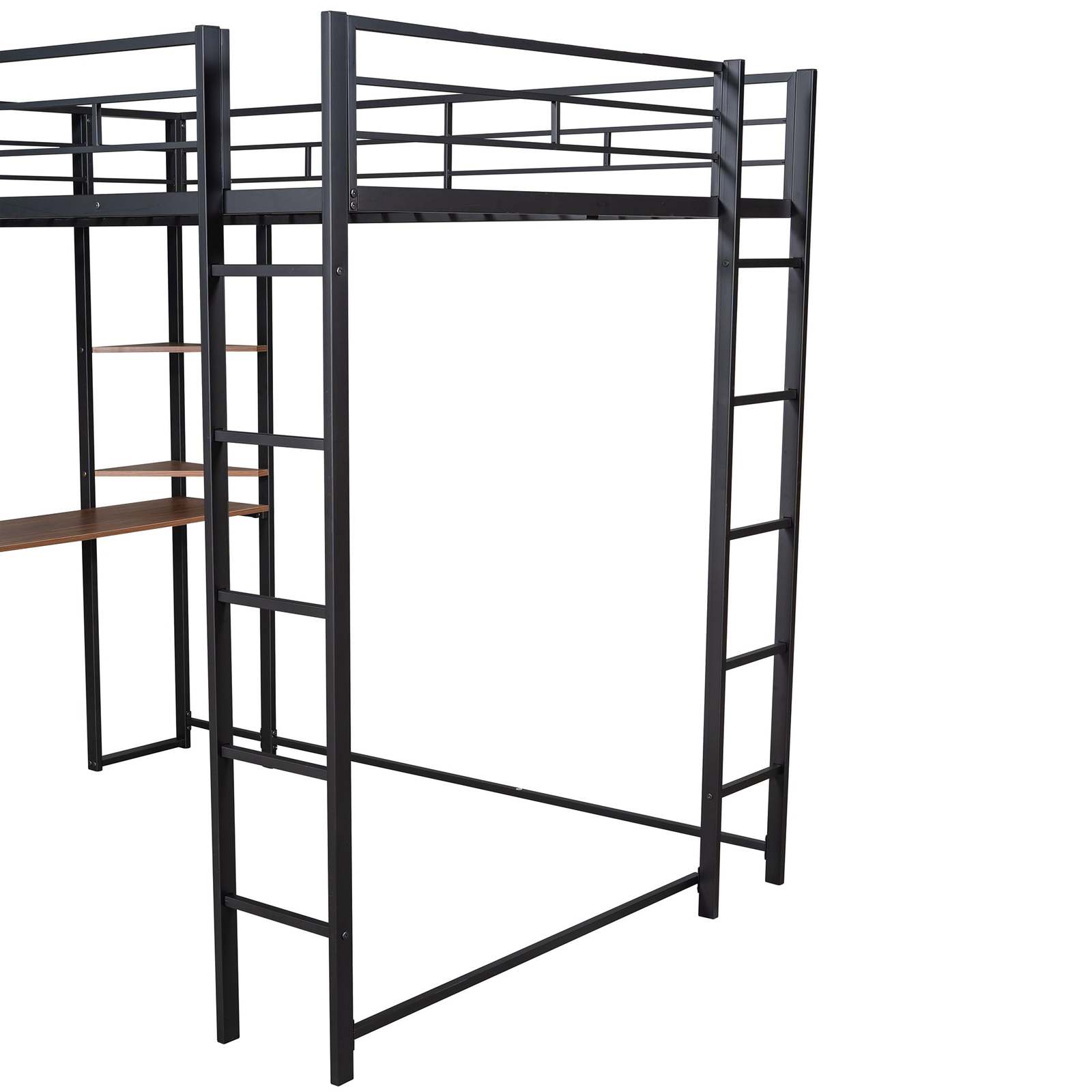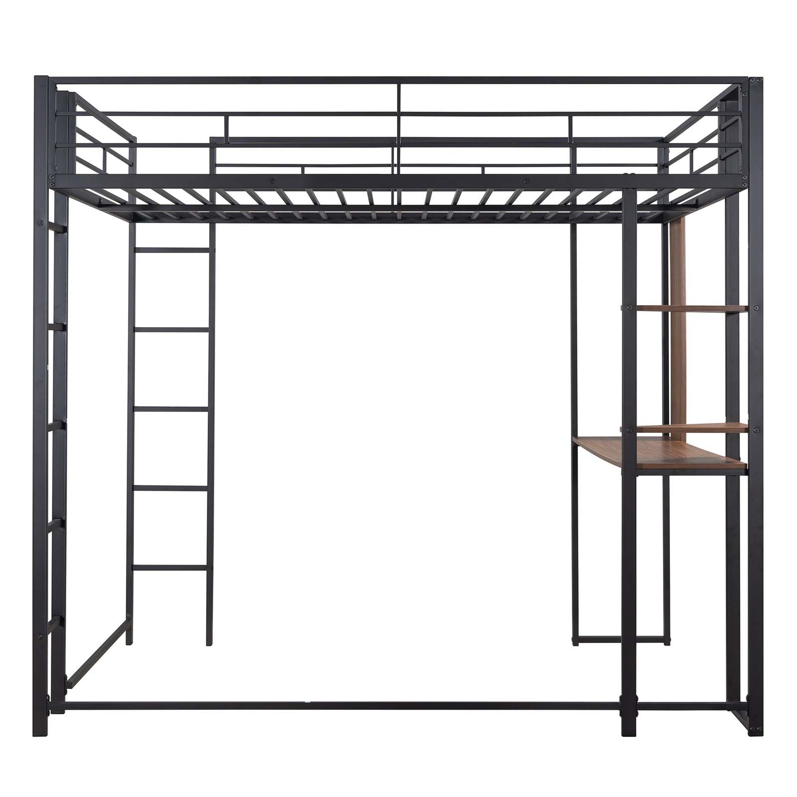 Black Full Size Metal Loft Bed with Desk & 2 Shelves