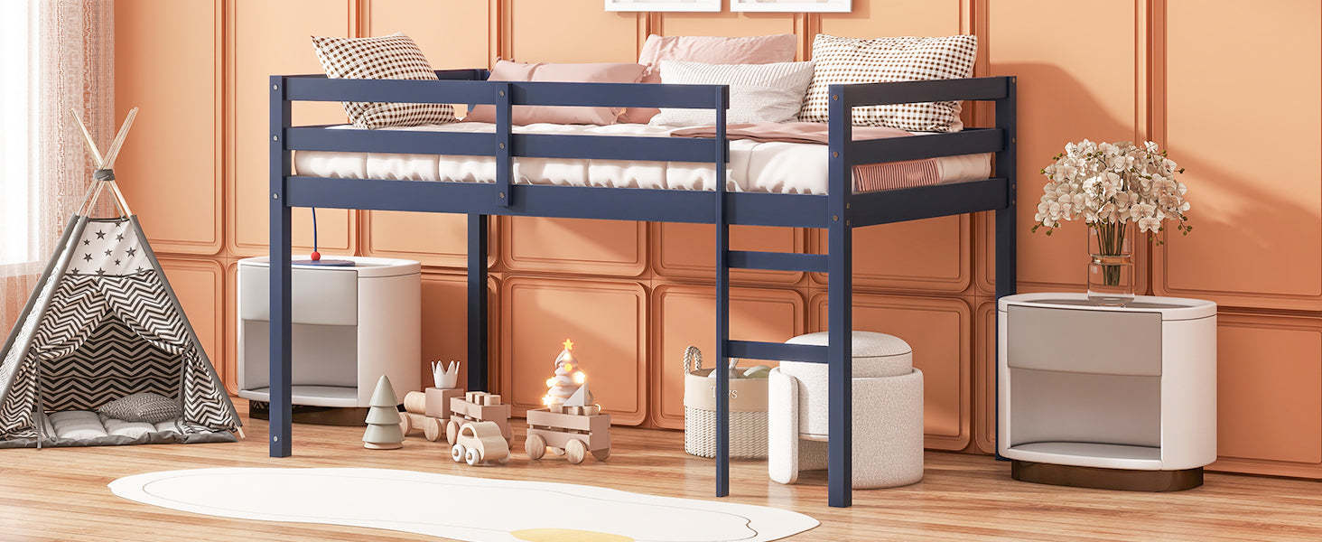 Blue Solid Wood Twin Loft Bed with Ladder & and 41 similar items