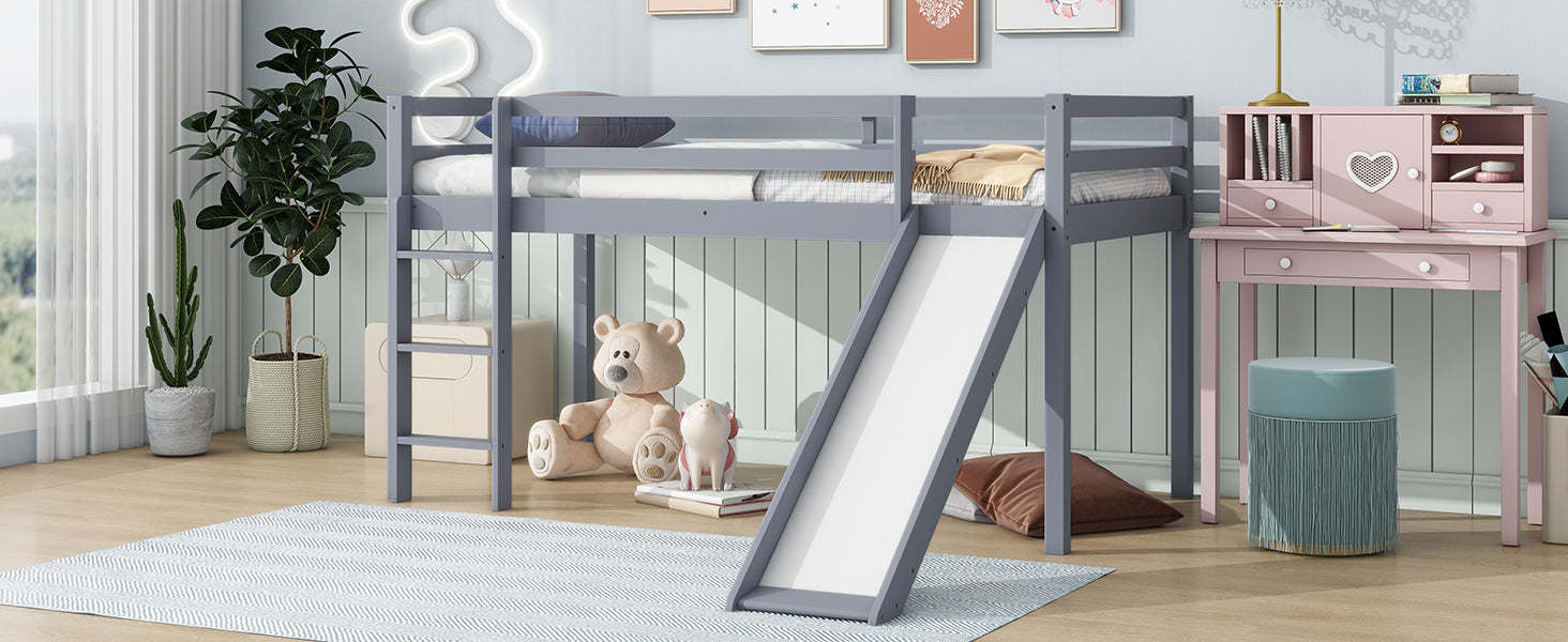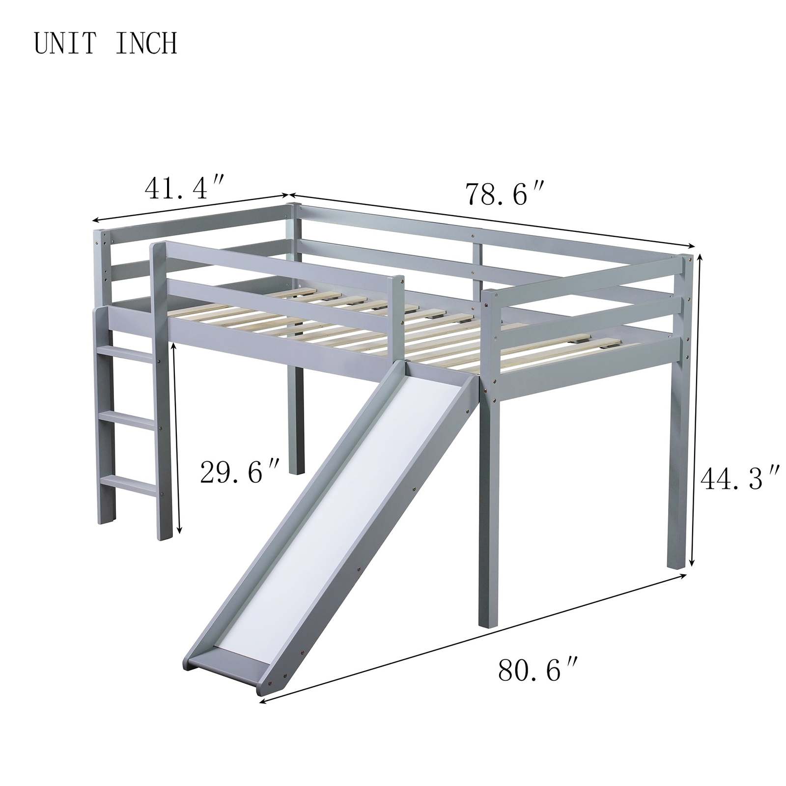 Twin Low Loft Bed with Slide & Ladder, Grey and 41 similar items