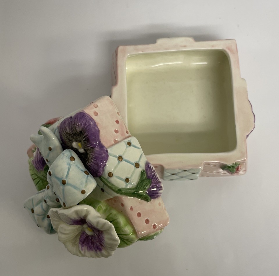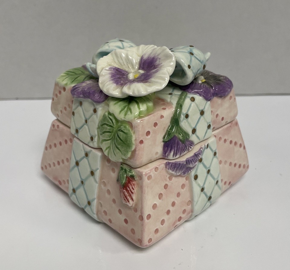 Fitz & Floyd essentials trinket box floral jewelry box flowers, ribbons & bows