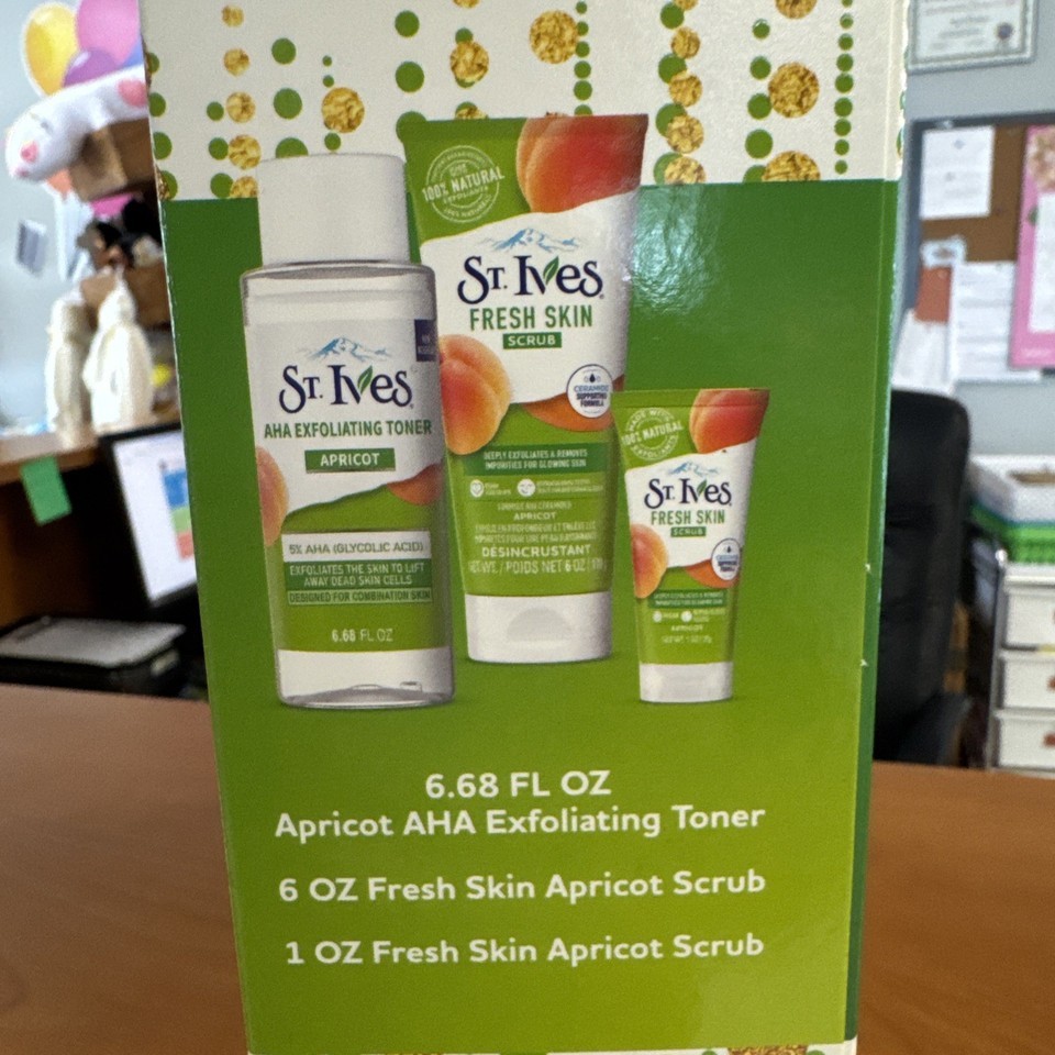 St. Ives Apricot Essentials 3-Piece Facial Gift Set โ Scrub, Toner, Fresh Skin added to cart.