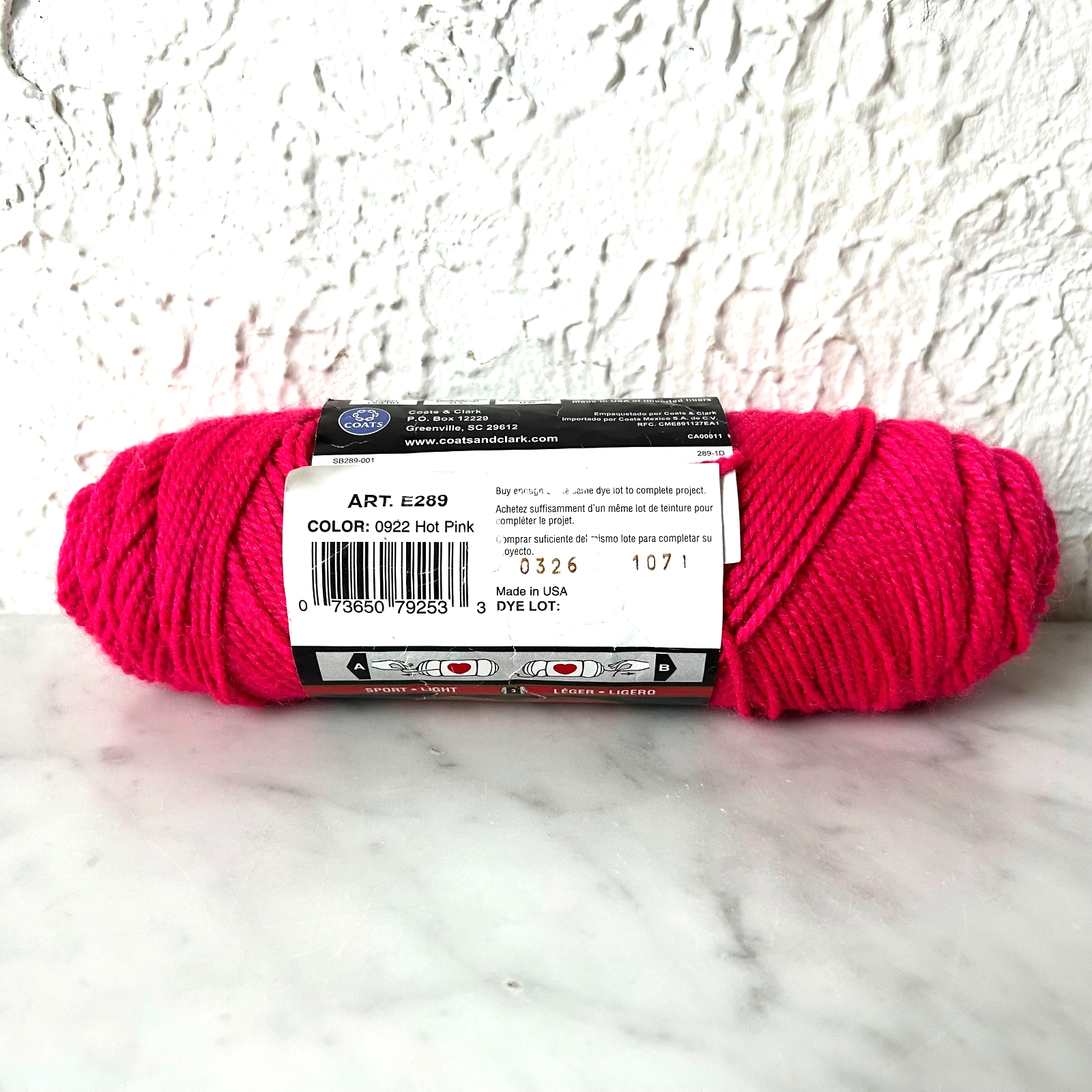 Red Heart Sport Weight Acrylic Yarn - 1 Skein Color Hot Pink #922