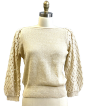 VTG 80s Beige Wool Blend Sweater Basket Weave Puff Sleeve Boatneck M