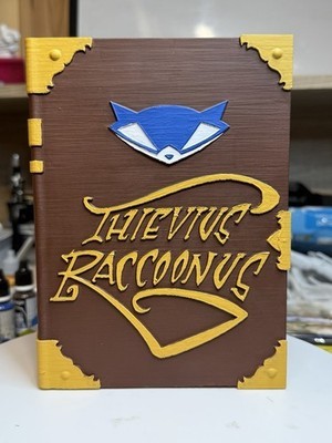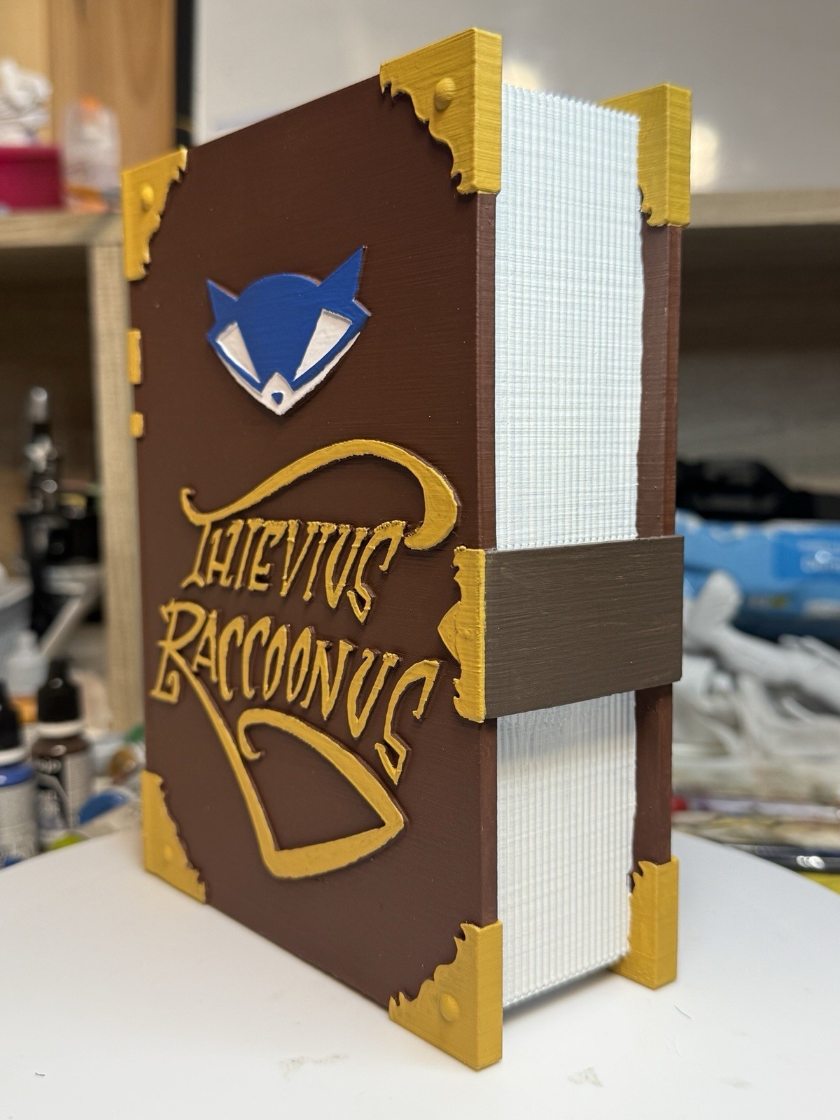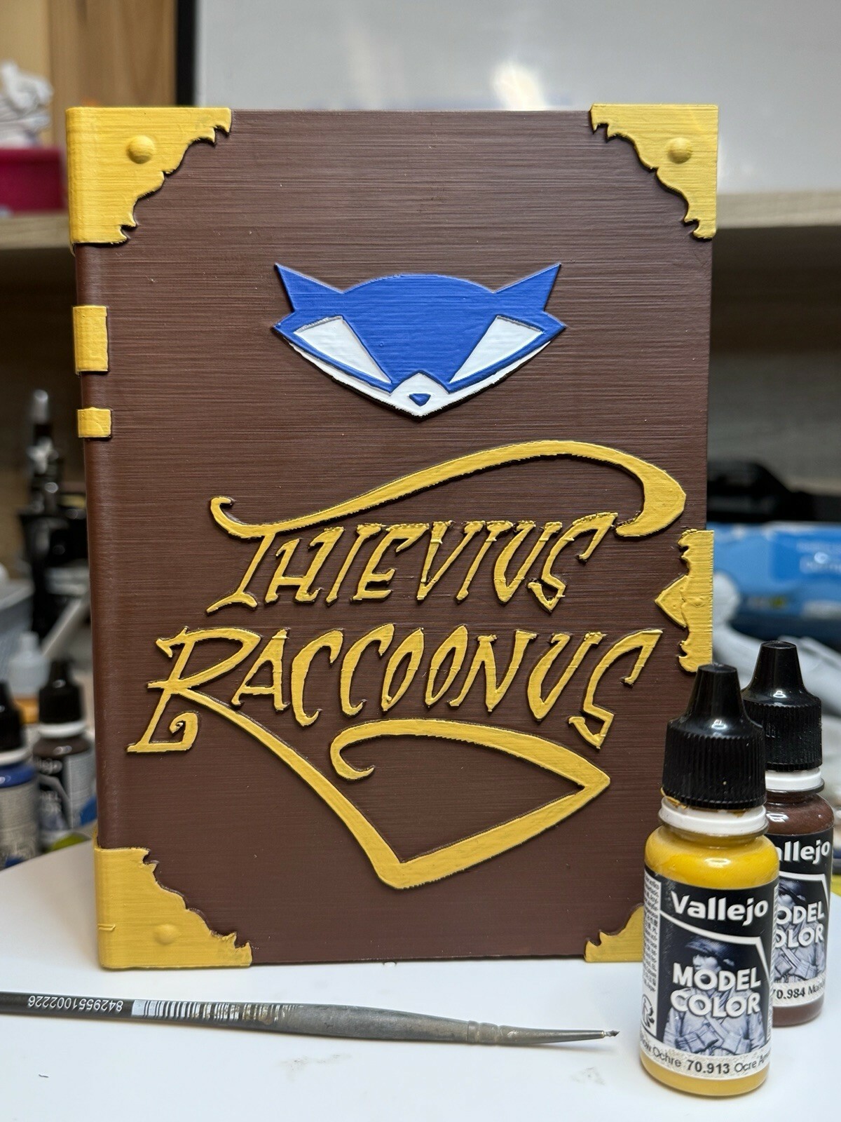 A smaller but equally detailed version of the handmade Thievius Raccoonus style tribute book. Cast in resin and painted by hand, this artisanal piece makes a unique collectible or gift.