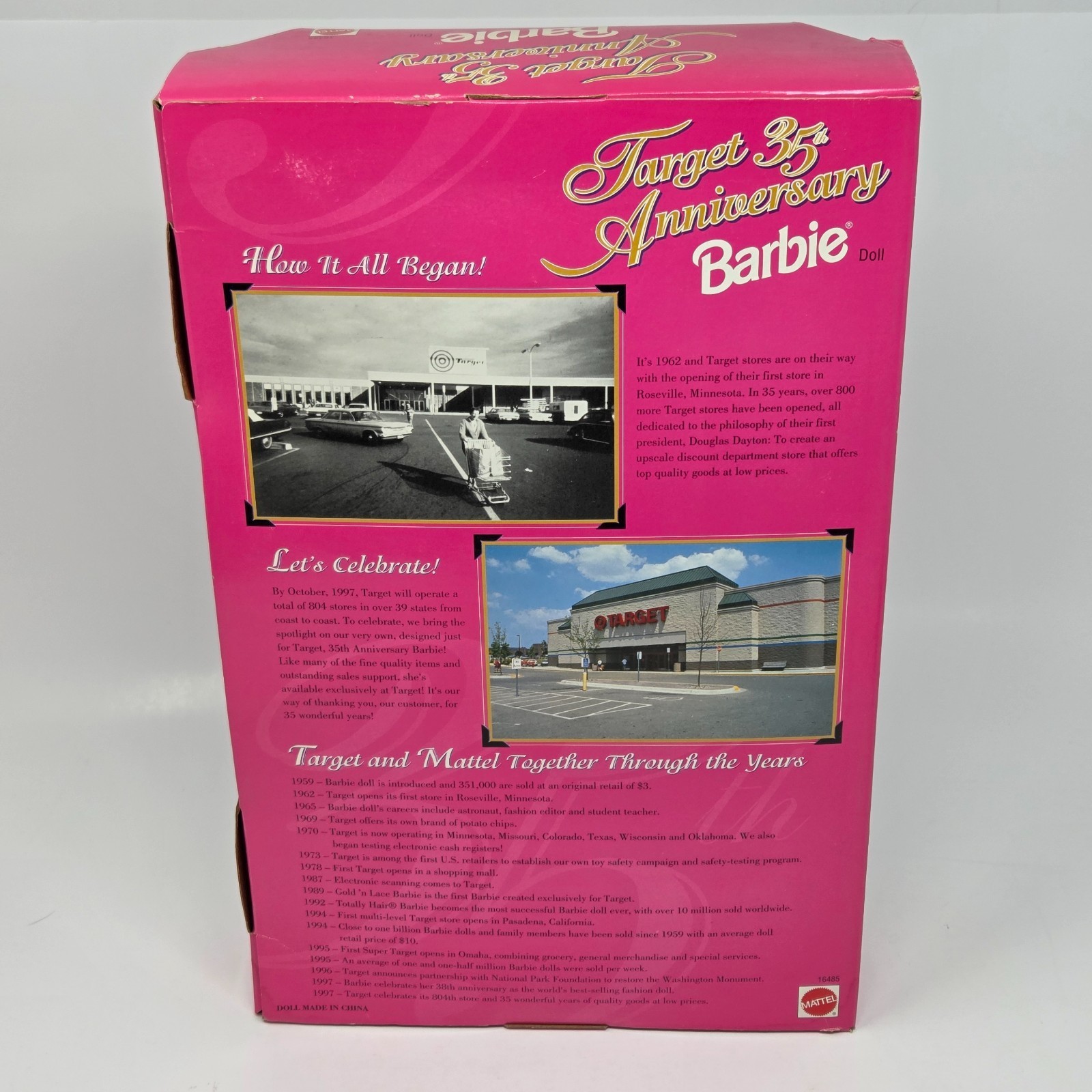 VINTAGE 1997 TARGET ANNIVERSARY BLONDE BARBIE DOLL ORIGINAL BOX MATTEL # 16485