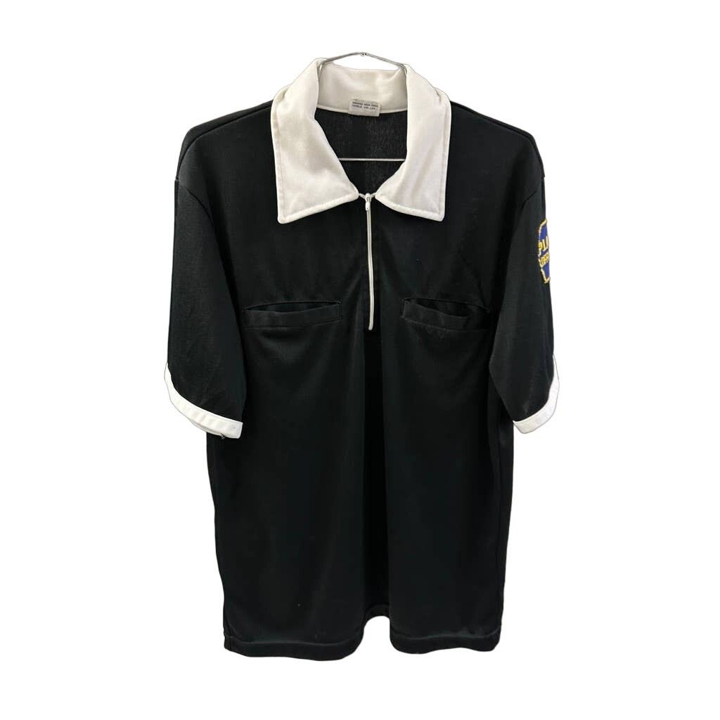 Striped Referee Shirt ? Cliff Keen, Ann Arbor, MI. Black white, poly, Sz L.