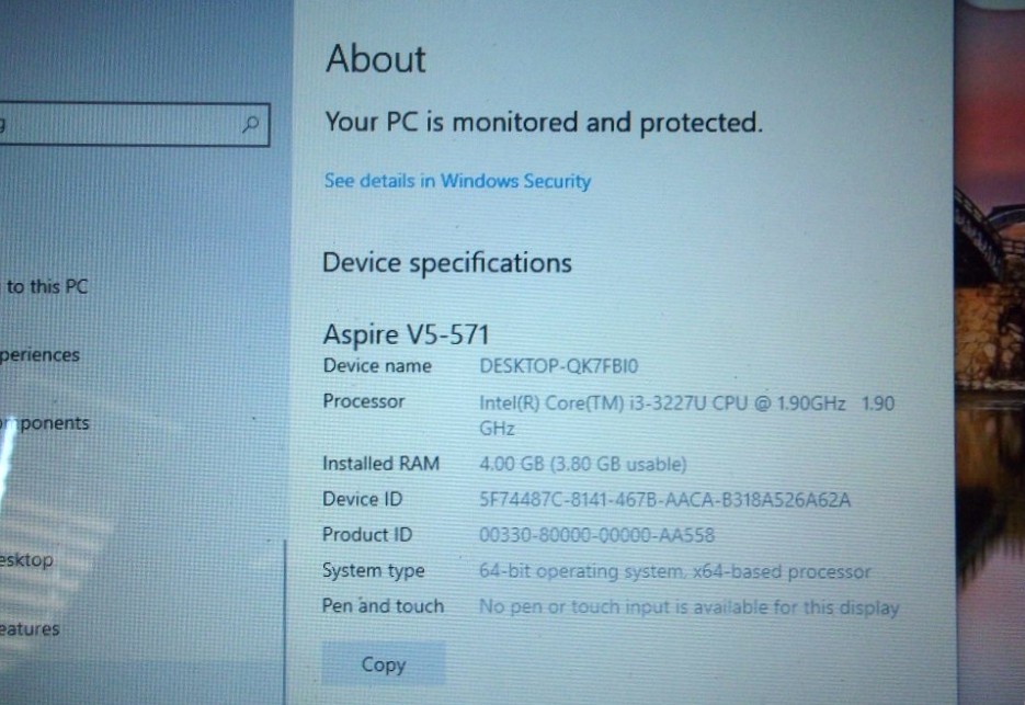 Acer Aspire V5-571-6677 15.6'' 1.90GHz Intel Windows 10 boots