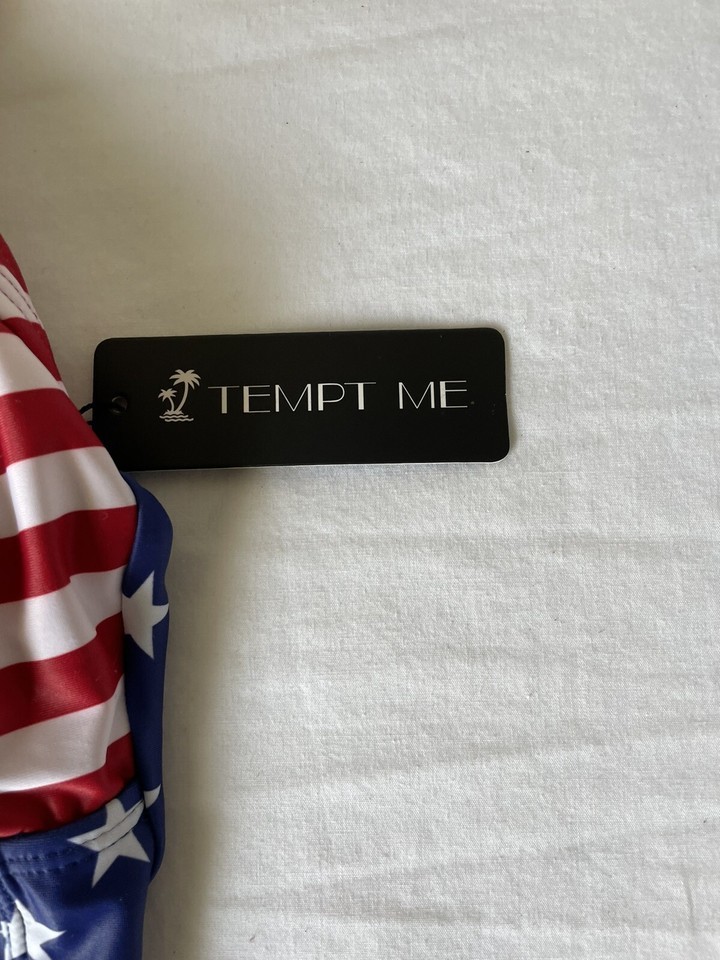 Tempt Me Women American Flag Ruched Slimming One Piece Swimsuits Tummy Control Vintage Bathing Suits M